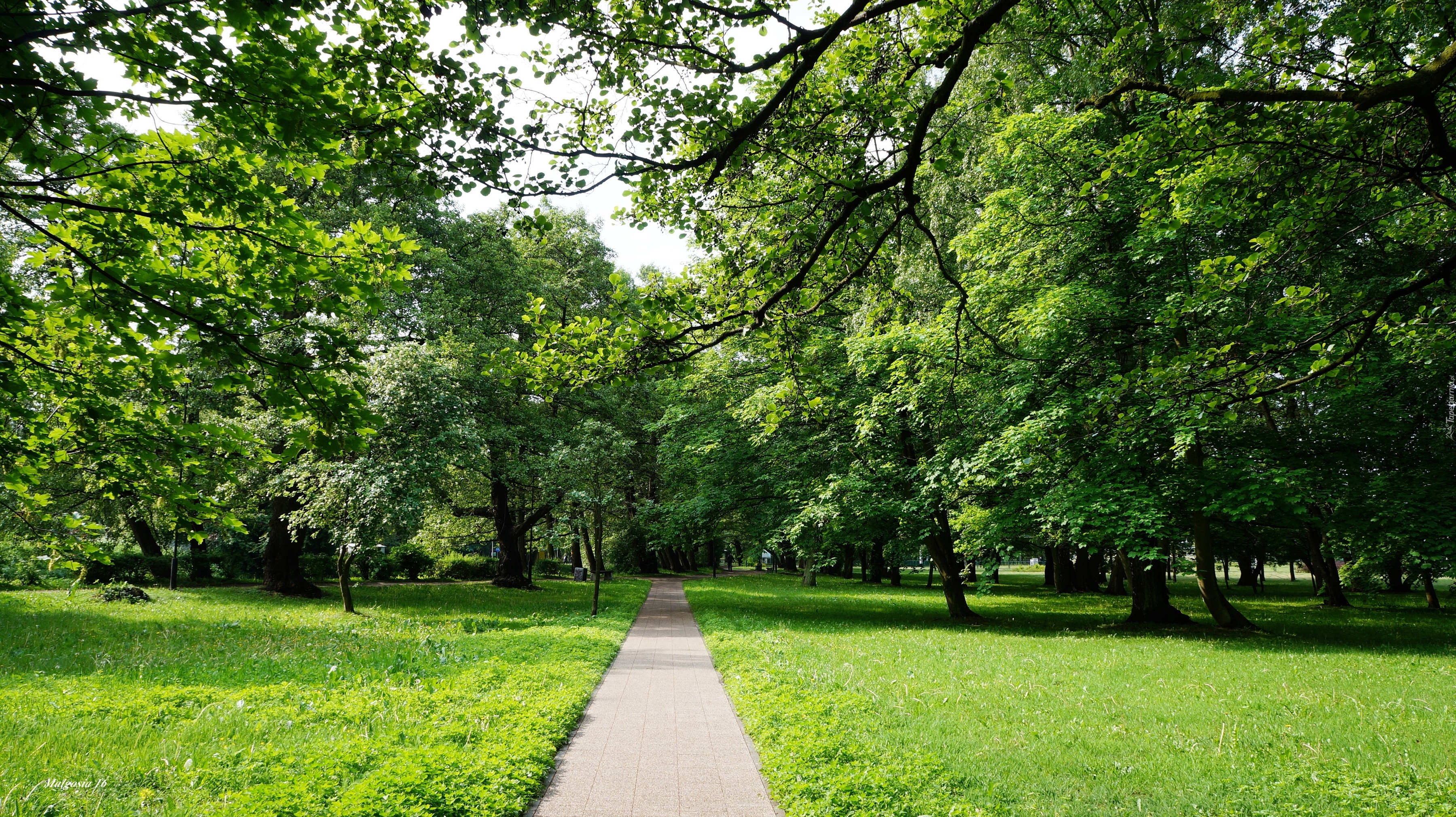 Edytor tapety: Polska, Gdańsk, Park Jelitkowski, Ścieżka, Droga, Drzewa, Zieleń, Trawnik
