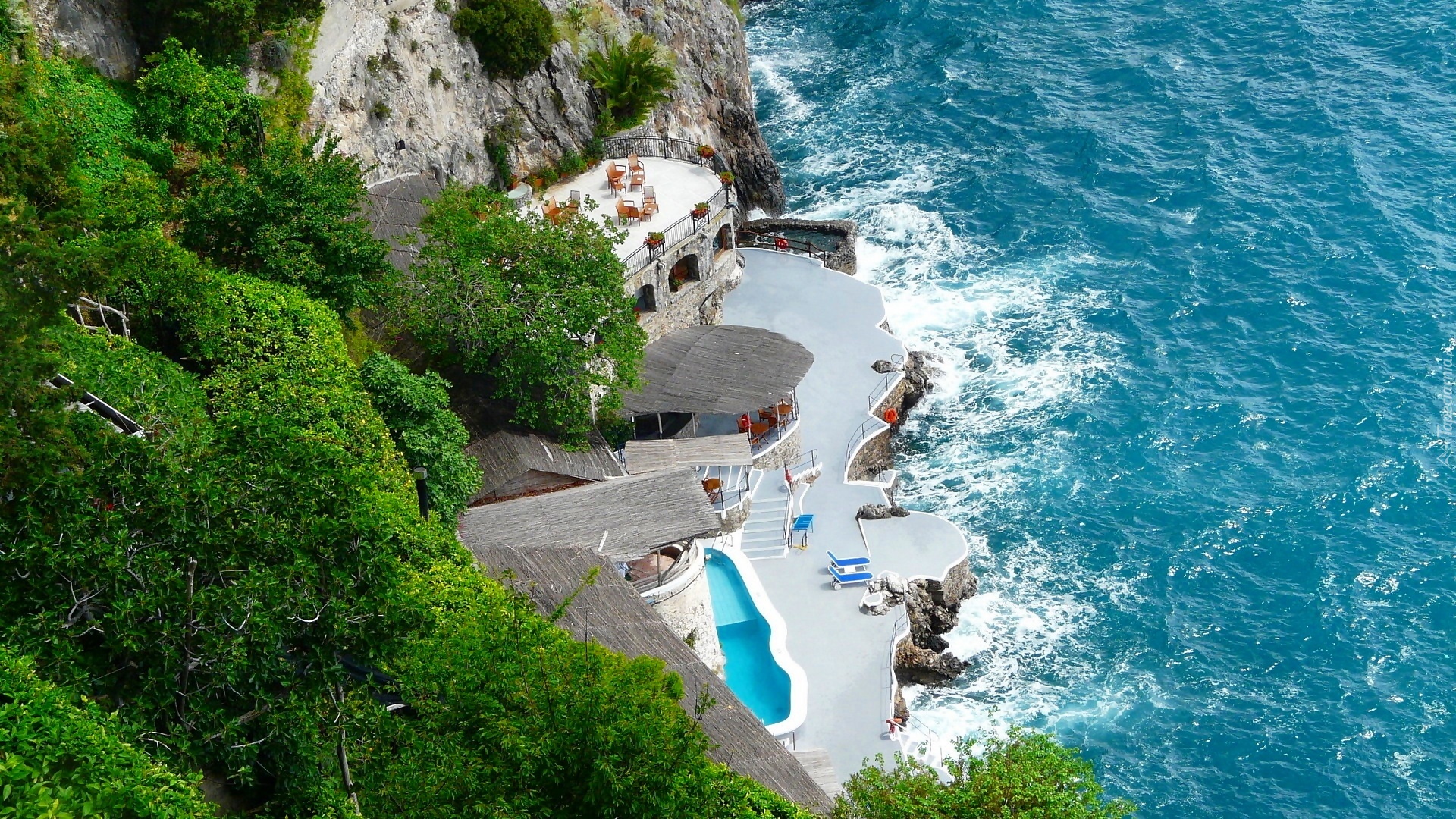 Edytor tapety: Kurort, Hotel, Basen, Morze, Wzgórze