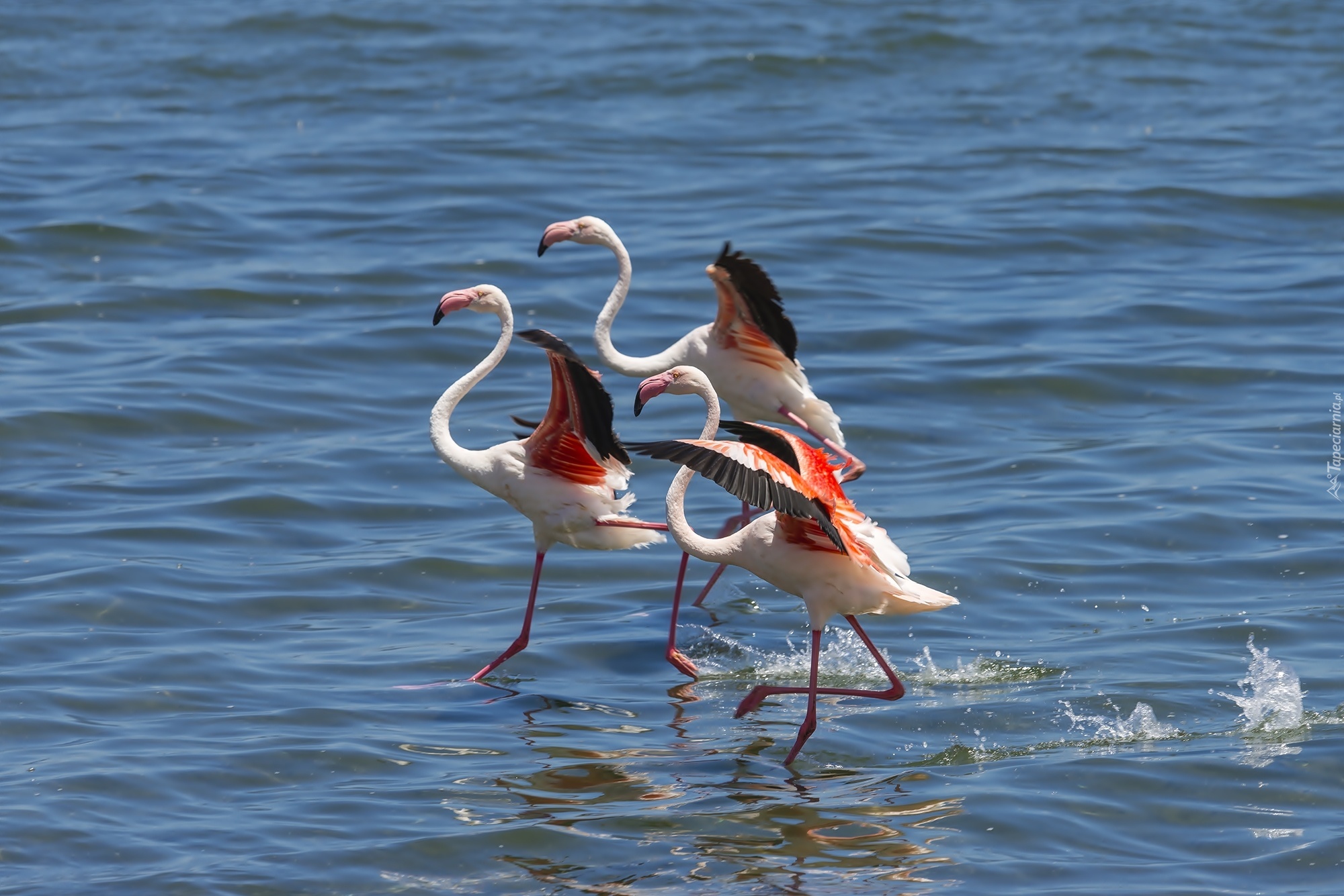 Edytor tapety: Trzy, Flamingi, Morze