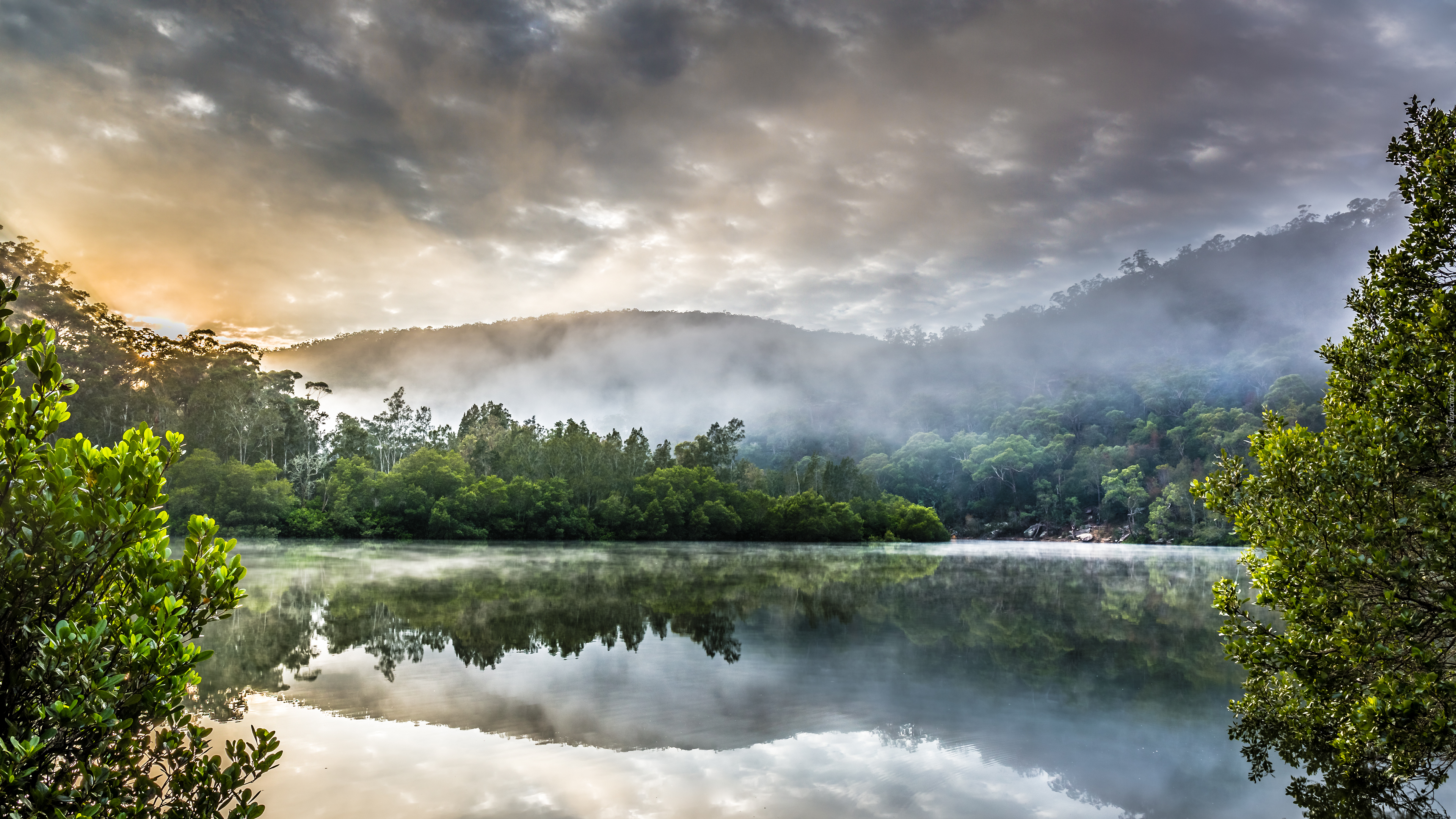 Edytor tapety: Góry, Las, Rzeka, Mgła
