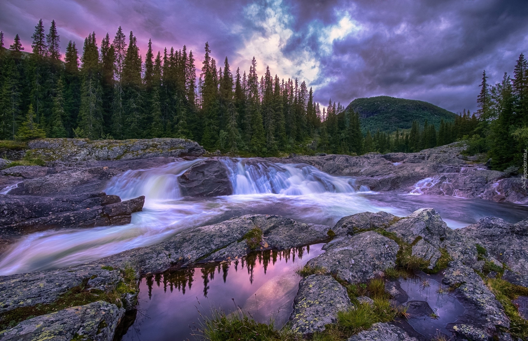Edytor tapety: Drzewa, Kamienie, Potok, Góry
