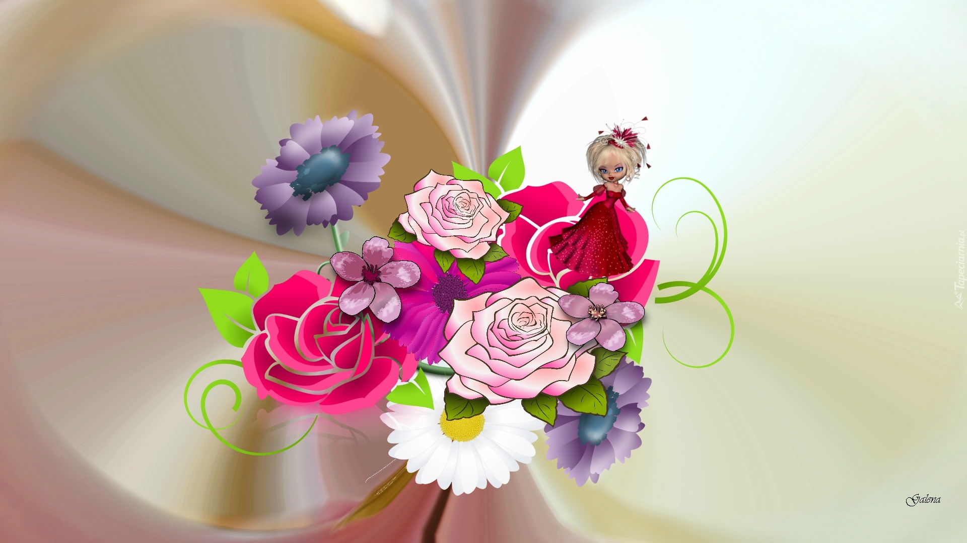 Edytor tapety: Bukiet, Kwiatów, Laleczka, Grafika