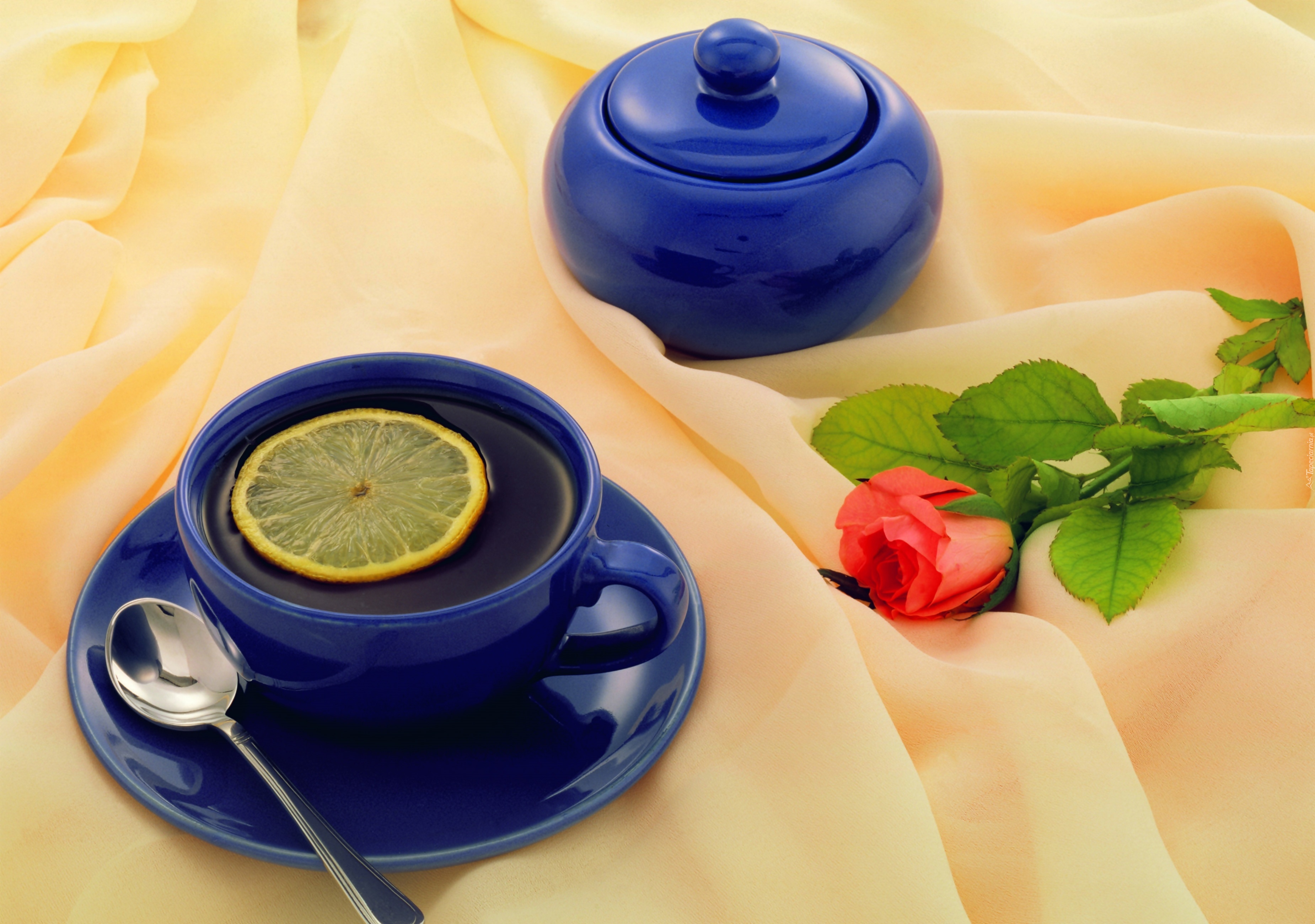 Edytor tapety: Filiżanka, Herbaty, Cukierniczka, Czerwona, Róża, Kompozycja