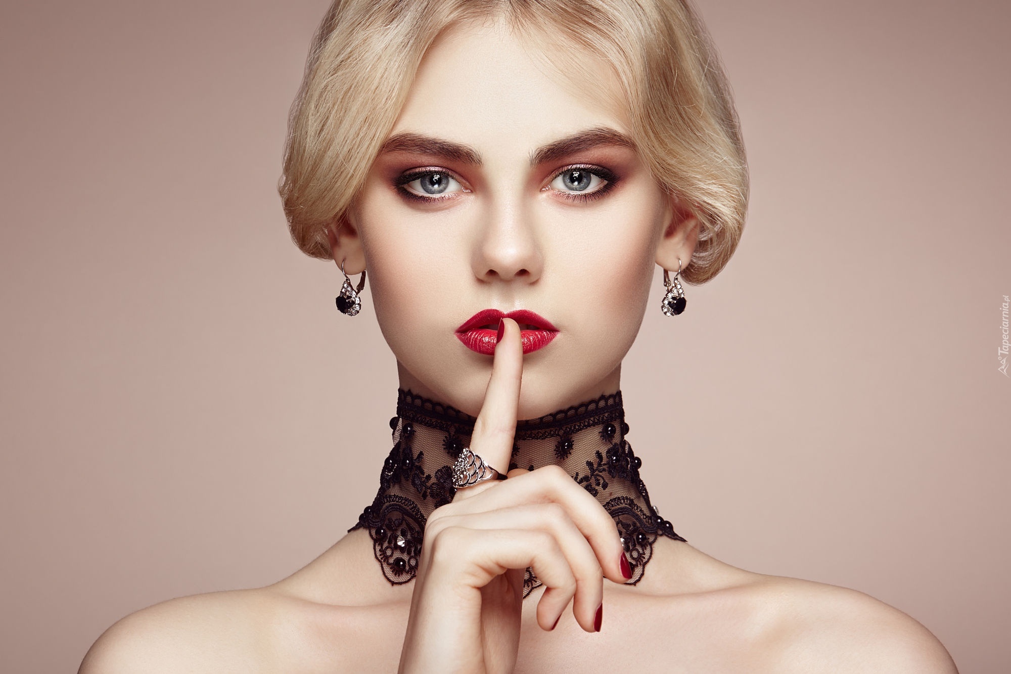 Edytor tapety: Kobieta, Blondynka, Kolczyki, Makijaż