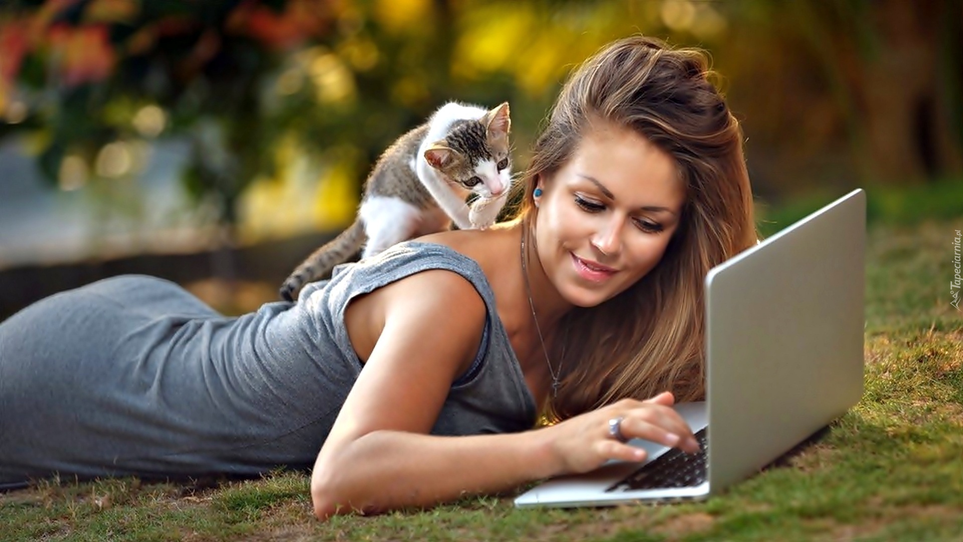 Edytor tapety: Kobieta, Mały, Kotek, Laptop