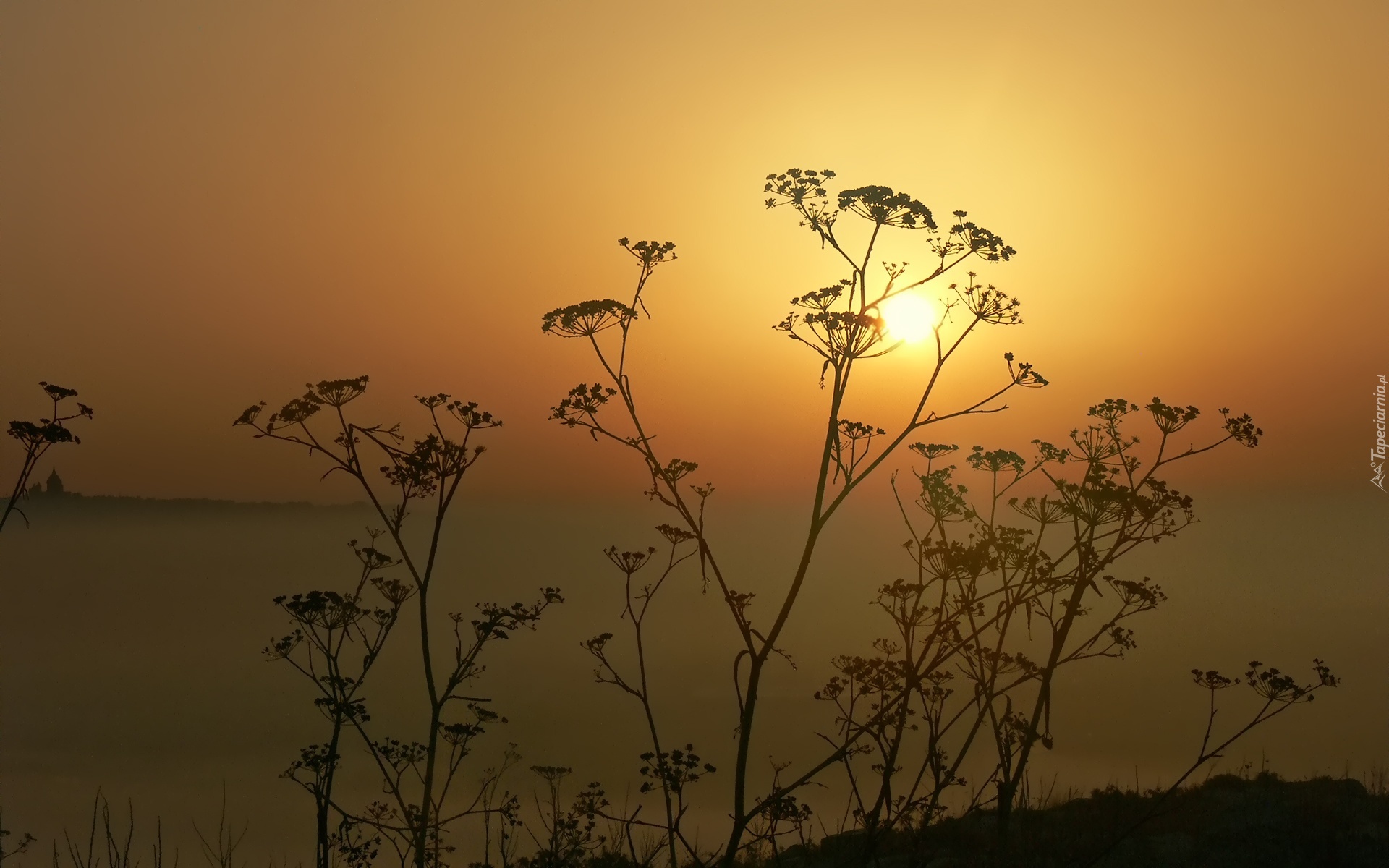 Edytor tapety: Zachód, Słońca, Mgła, Trawy