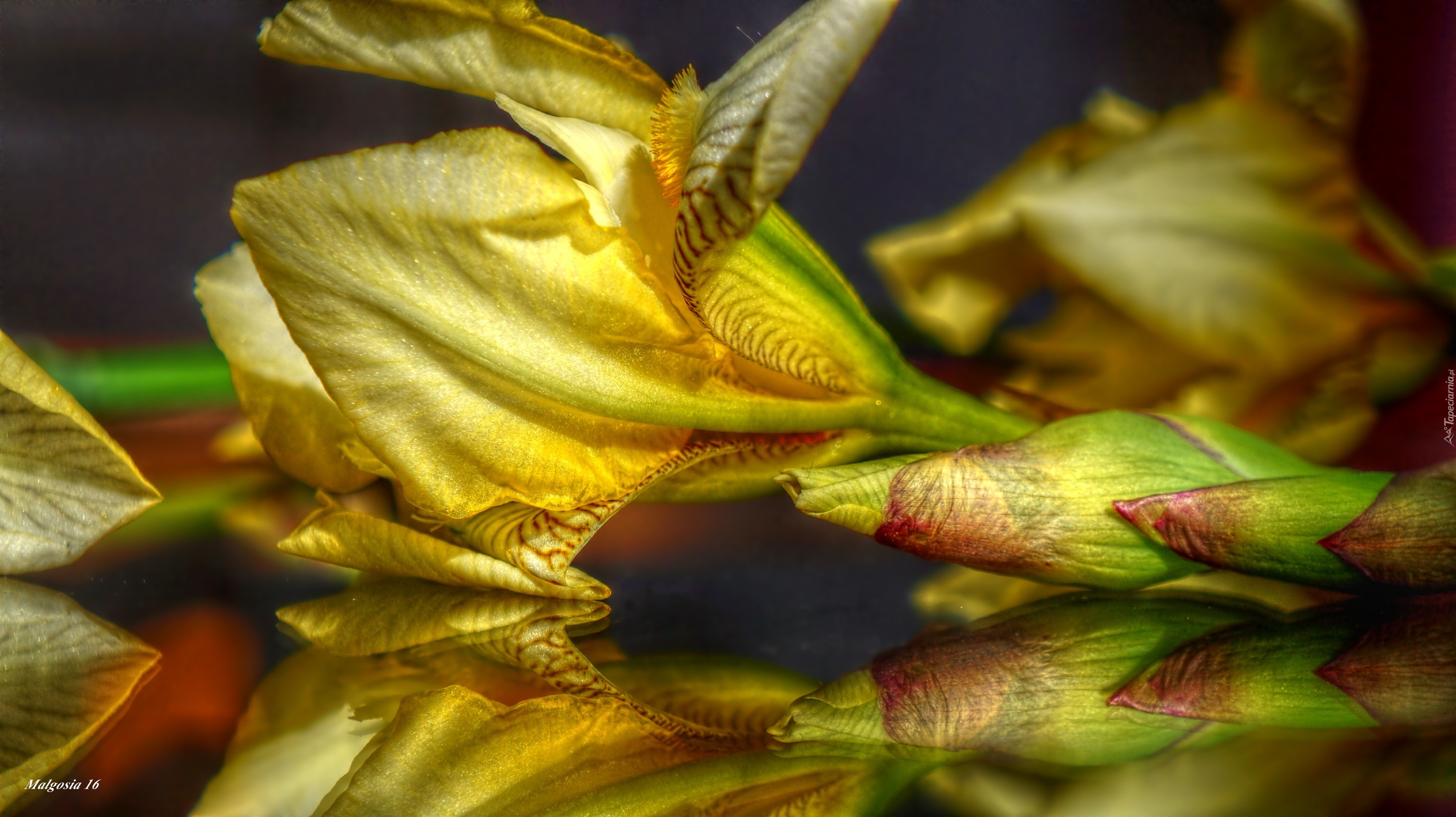 Edytor tapety: Kwiat, Żółty, Irys, Odbicie