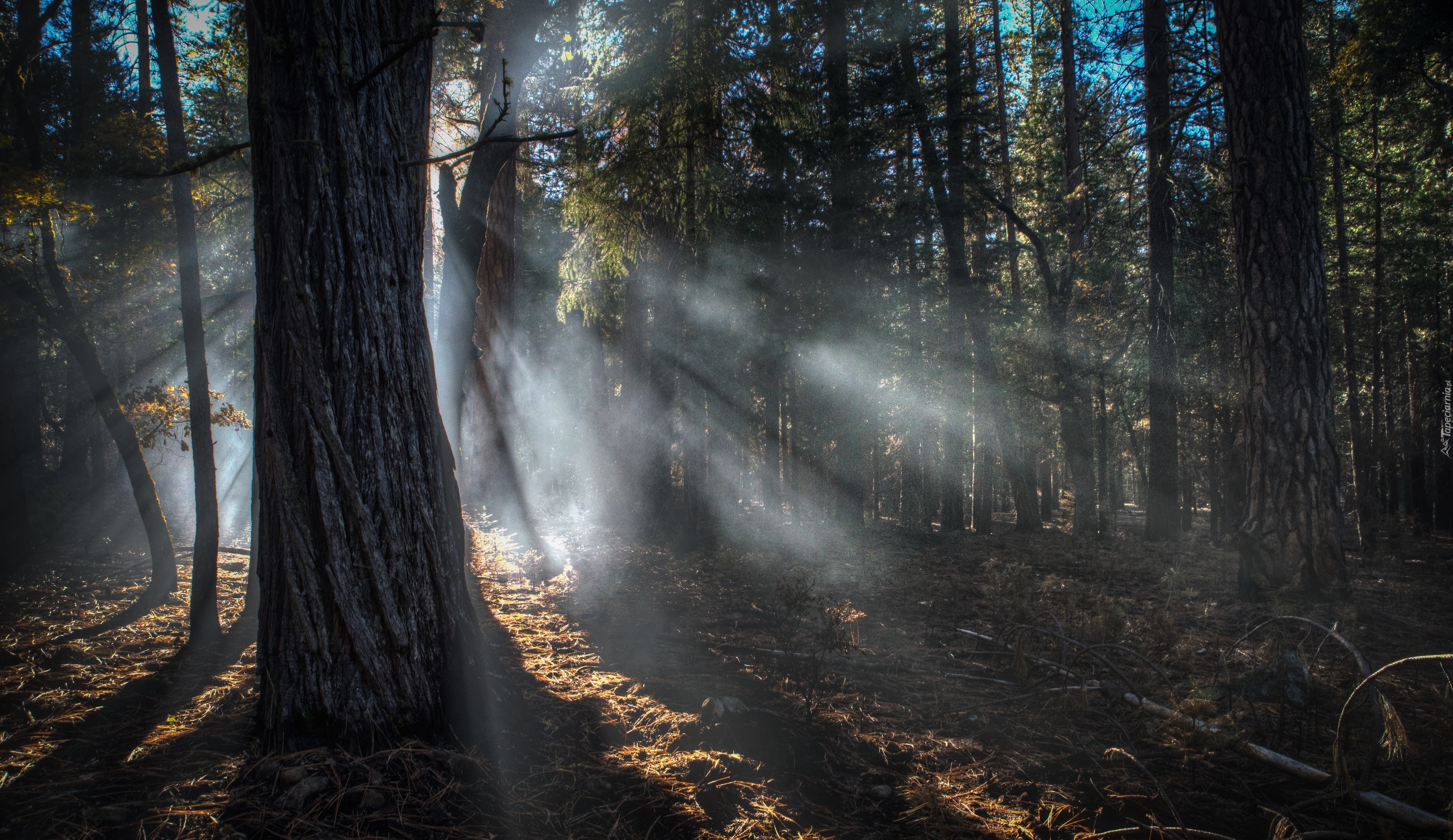 Edytor tapety: Las, Promienie, Słońca, Mgła