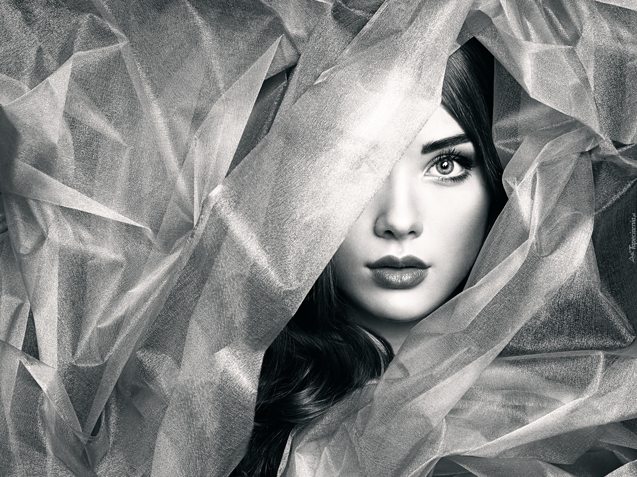Edytor tapety: Piękna, Kobieta, Tkanina, Czarno, Białe, Zdjęcie