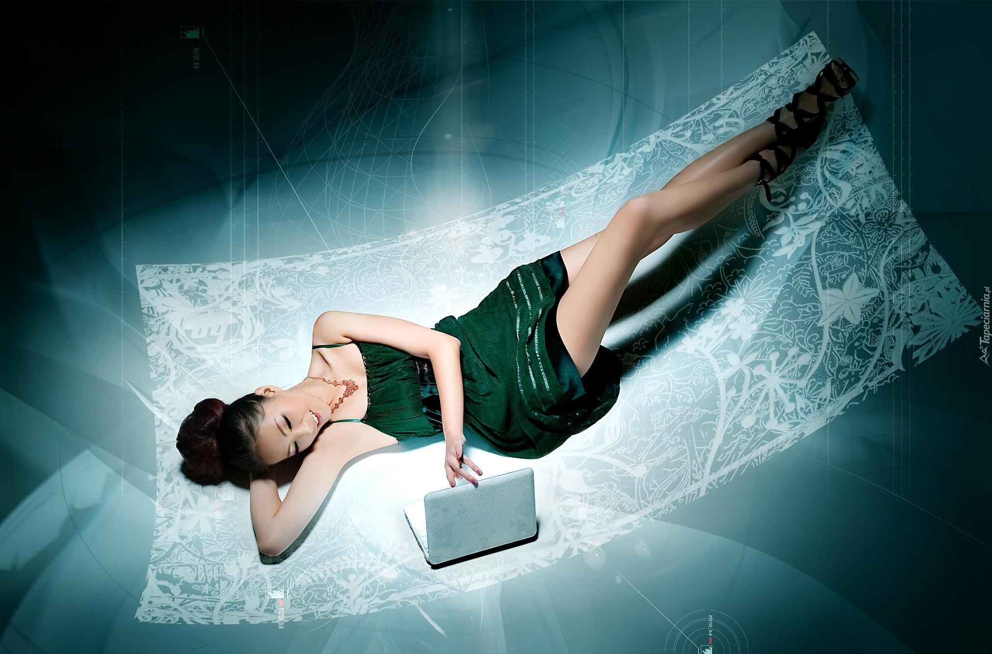 Edytor tapety: Azjatka, Długie, Nogi, Laptop
