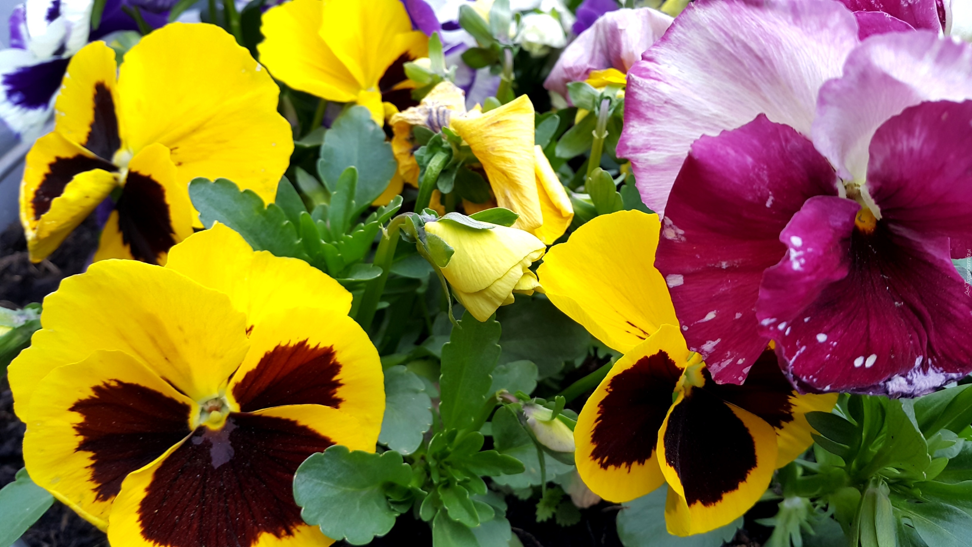 Edytor tapety: Żółte, Bordowe, Bratki