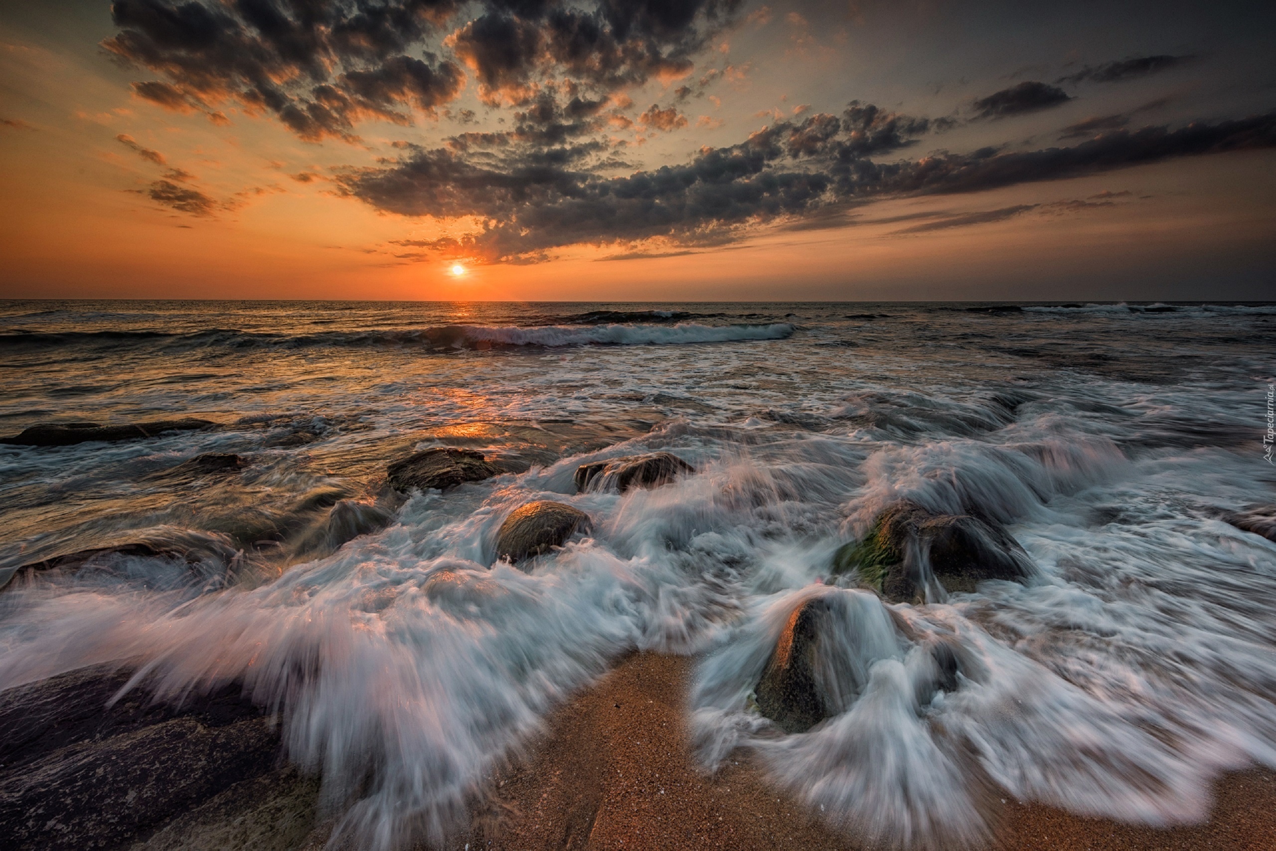 Edytor tapety: Morze, Kamienie, Zachód, Słońca