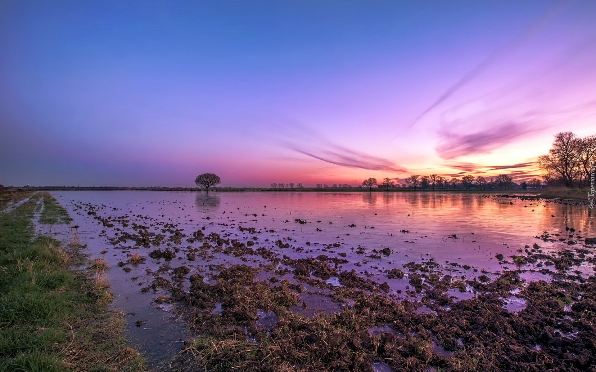 Edytor tapety: Bagno, Drzewa, Zachód, Słońca