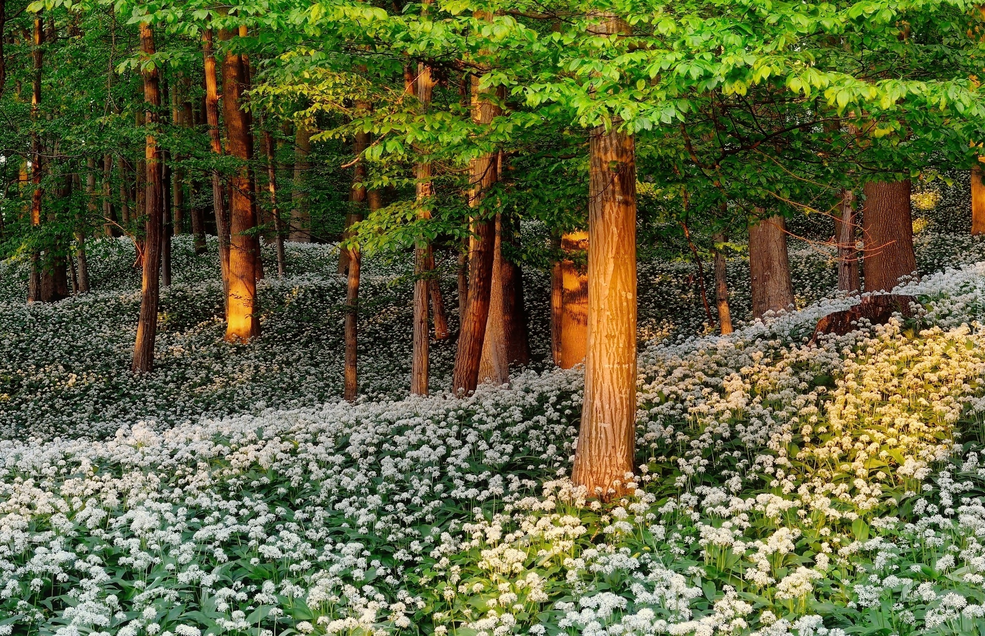 Edytor tapety: Las, Drzewa, Kwiaty, Wiosna