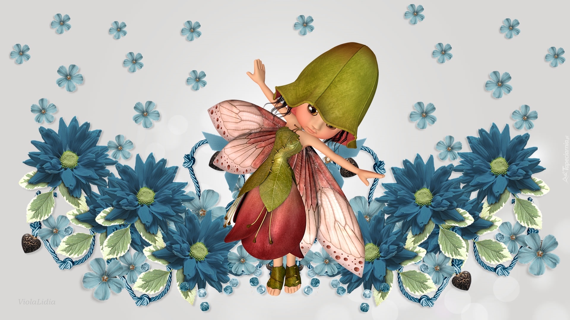 Edytor tapety: Grafika, Laleczka, Kwiaty