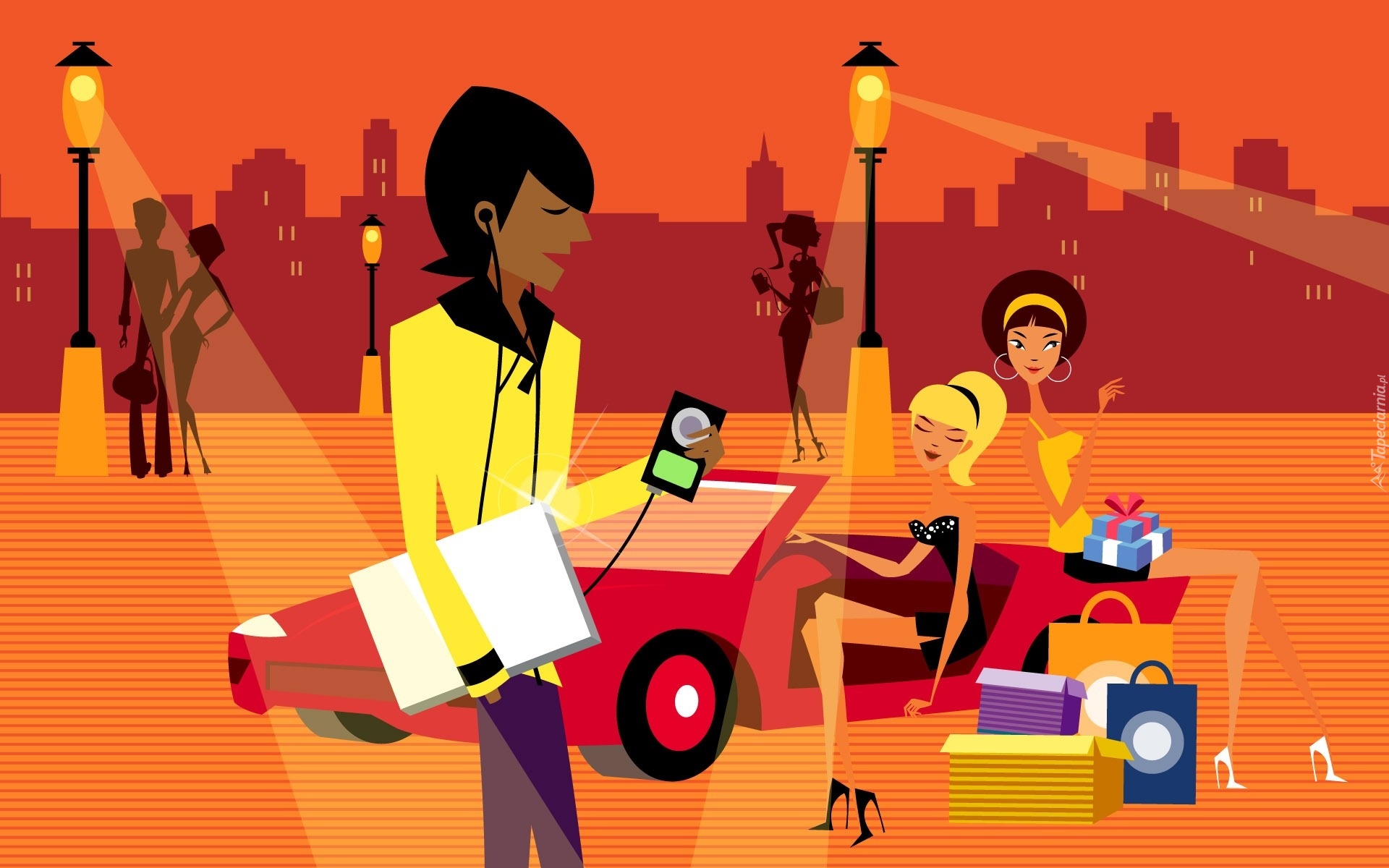 Edytor tapety: Miasto, Lampy, Samochód, Kobiety, Mężczyźni, 2D