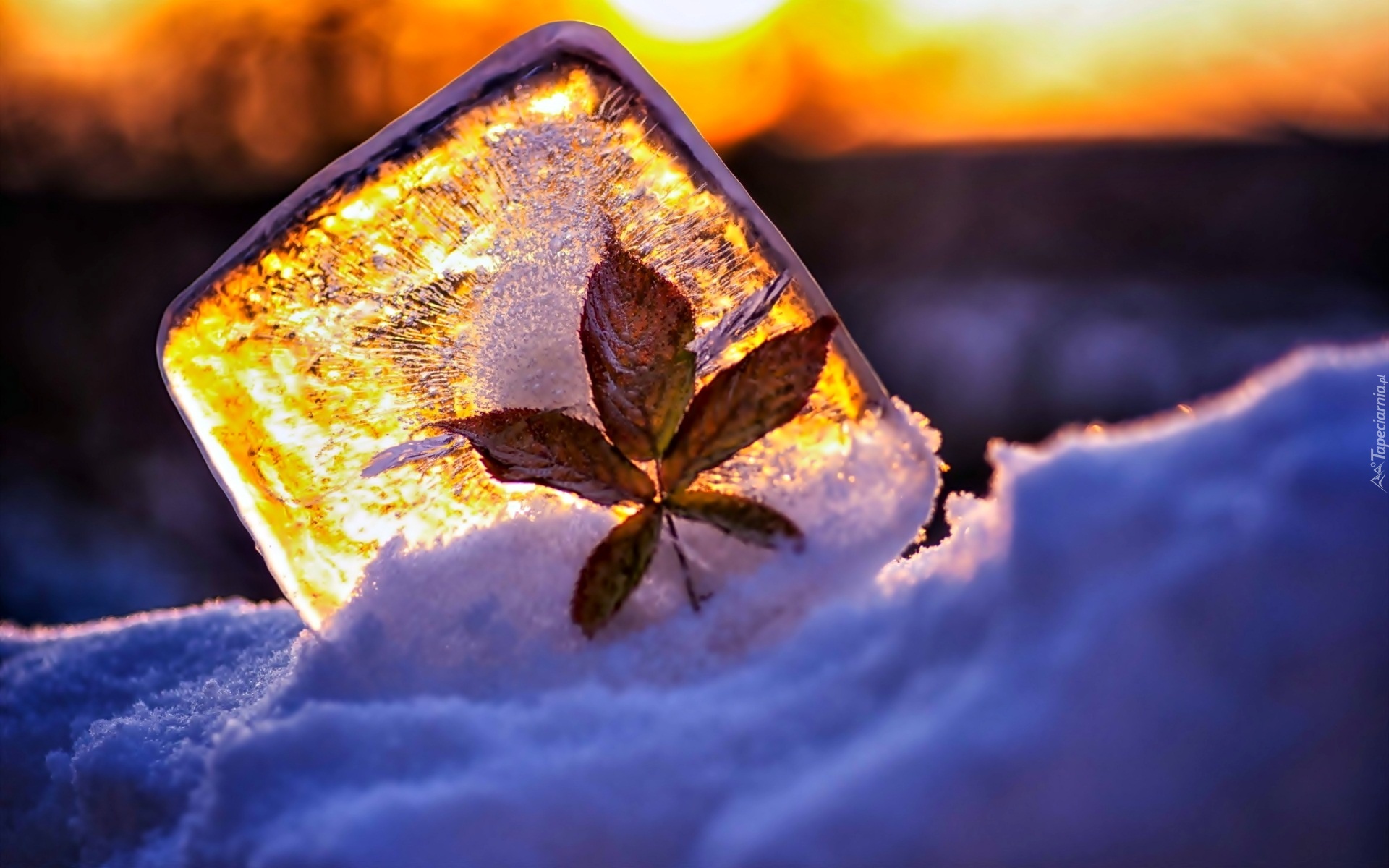 Edytor tapety: Liść, Kostka, Lodu, Zima