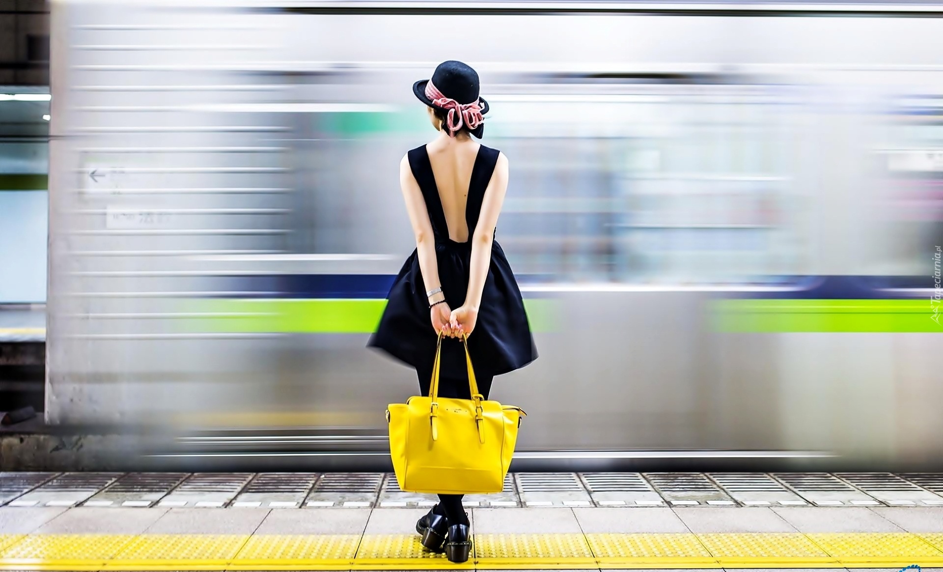 Edytor tapety: Kobieta, Modelka, Kapelusz, Żółta, Torebka, Grafika