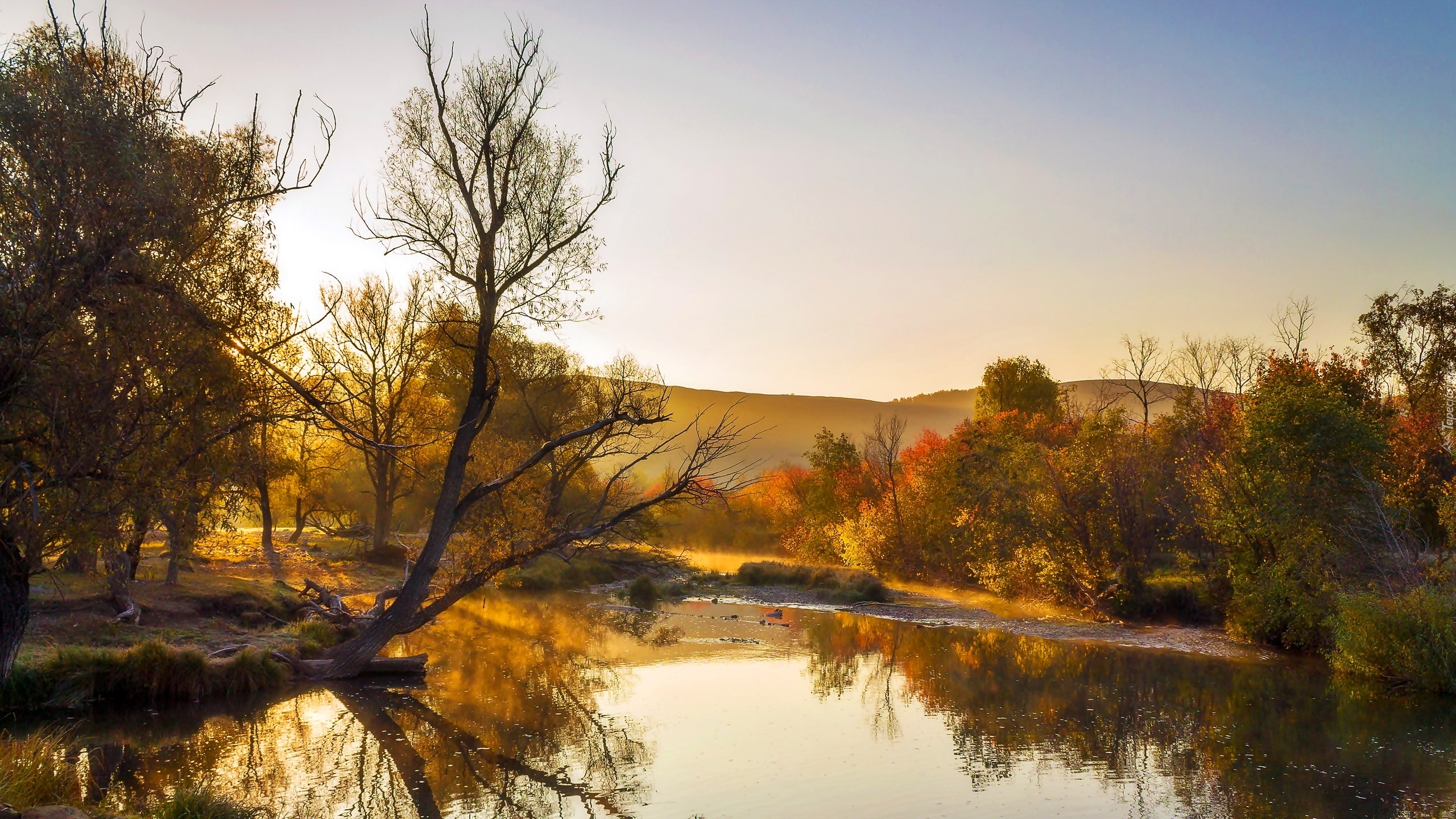 Edytor tapety: Jesień, Rzeka, Las, Wzgórza