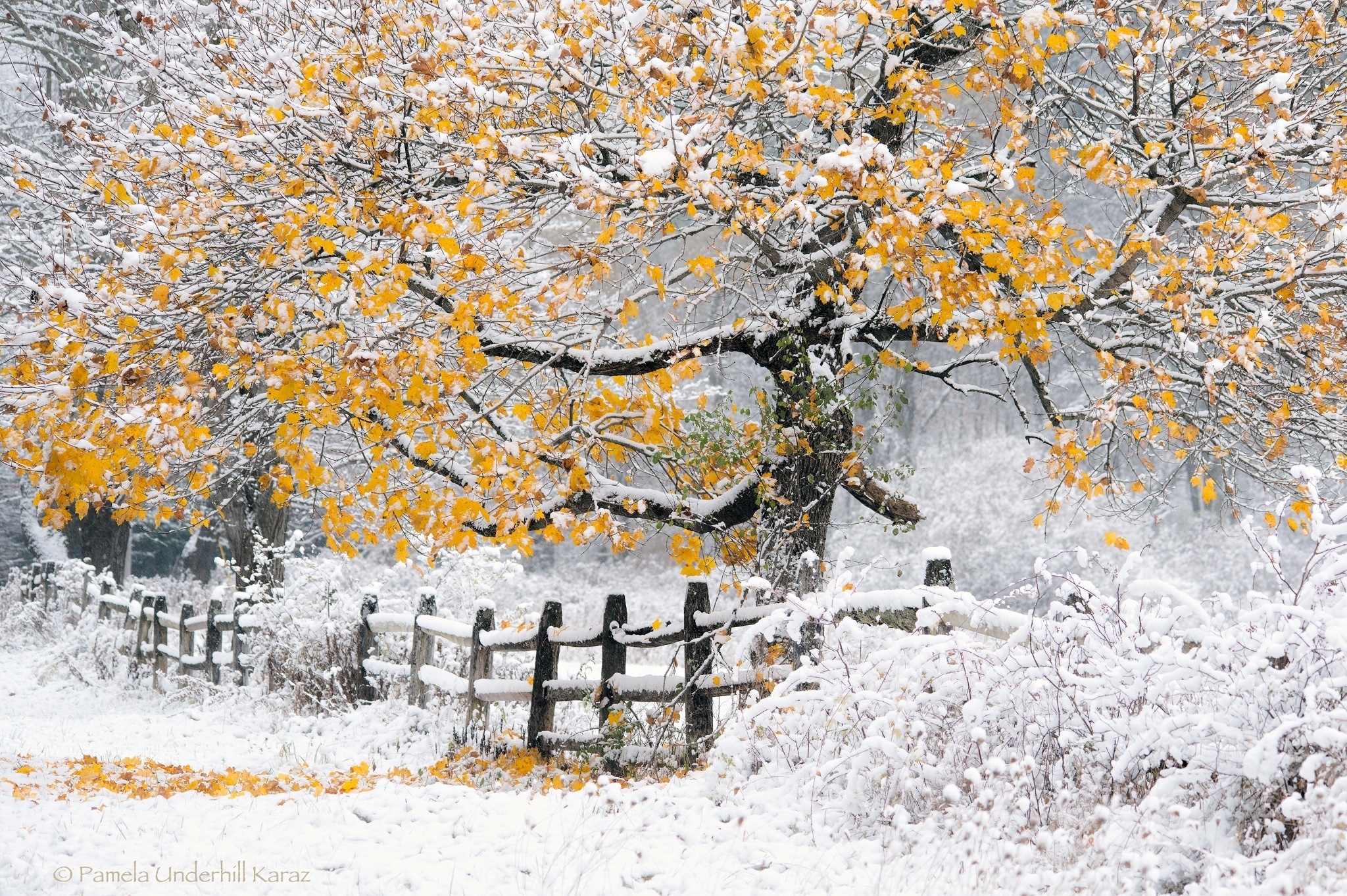 Edytor tapety: Zima, Śnieg, Drzewa, Płot, Las