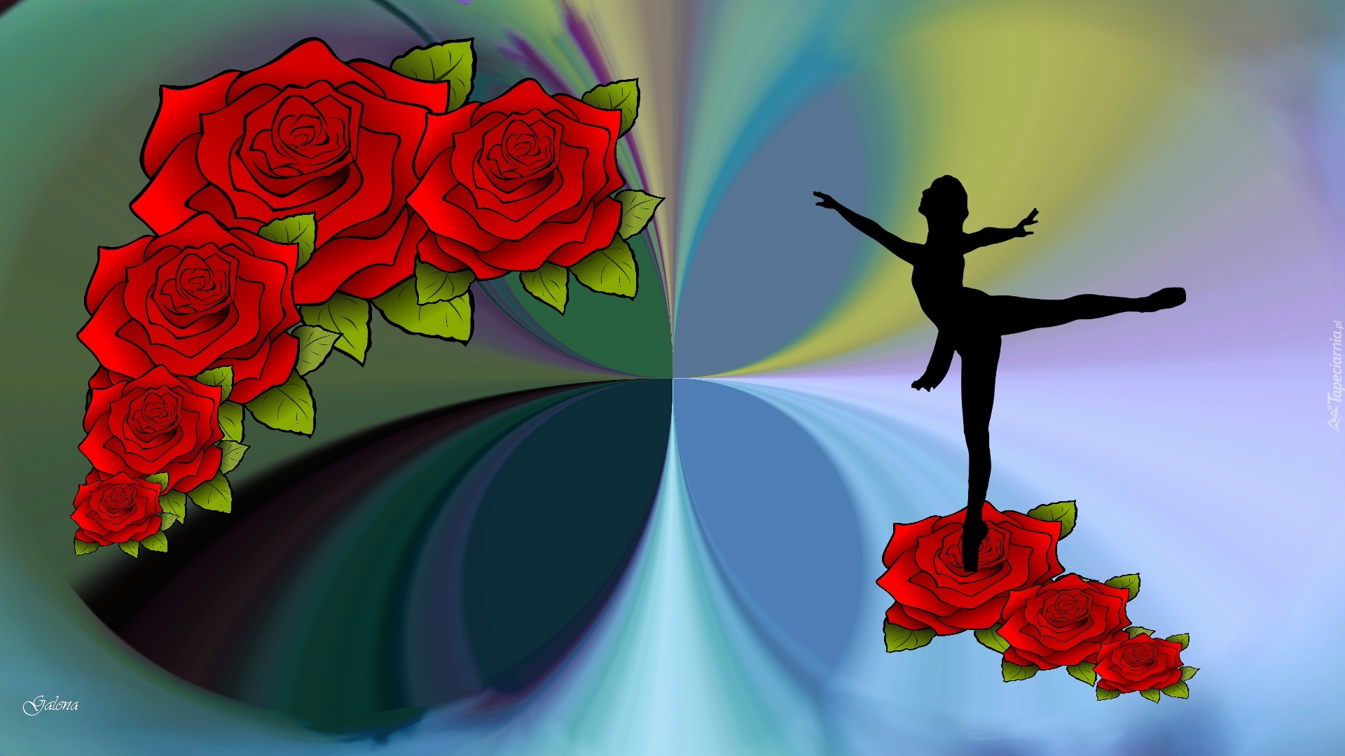 Edytor tapety: Czerwone, Róże, Baletnica, Grafika 2D