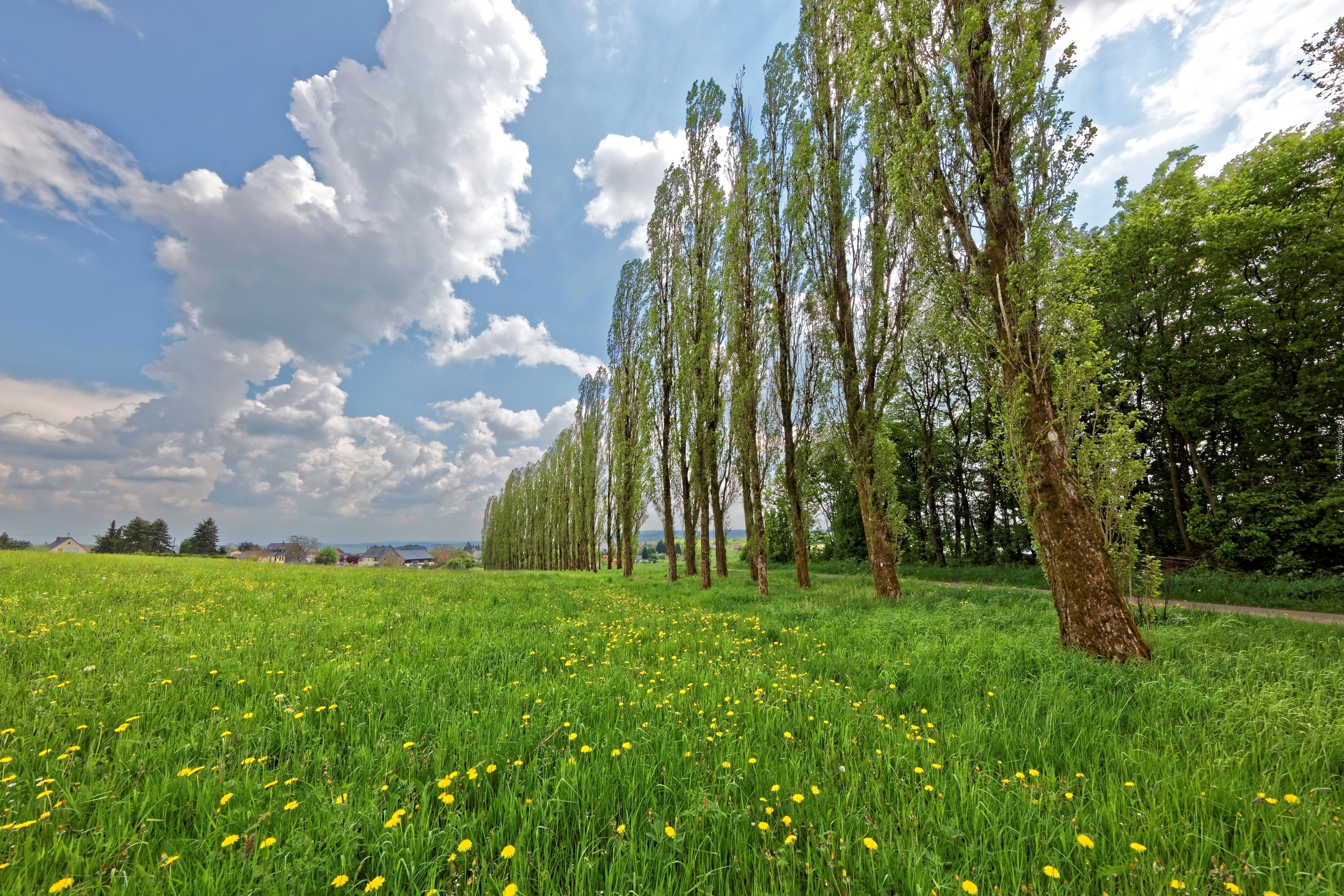 Edytor tapety: Łąka, Droga, Drzewa, Chmury