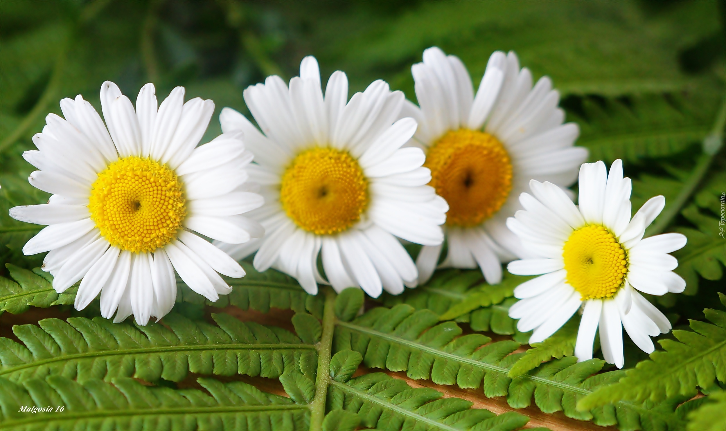 Edytor tapety: Margerytki, Białe, Kwiaty, Paproć