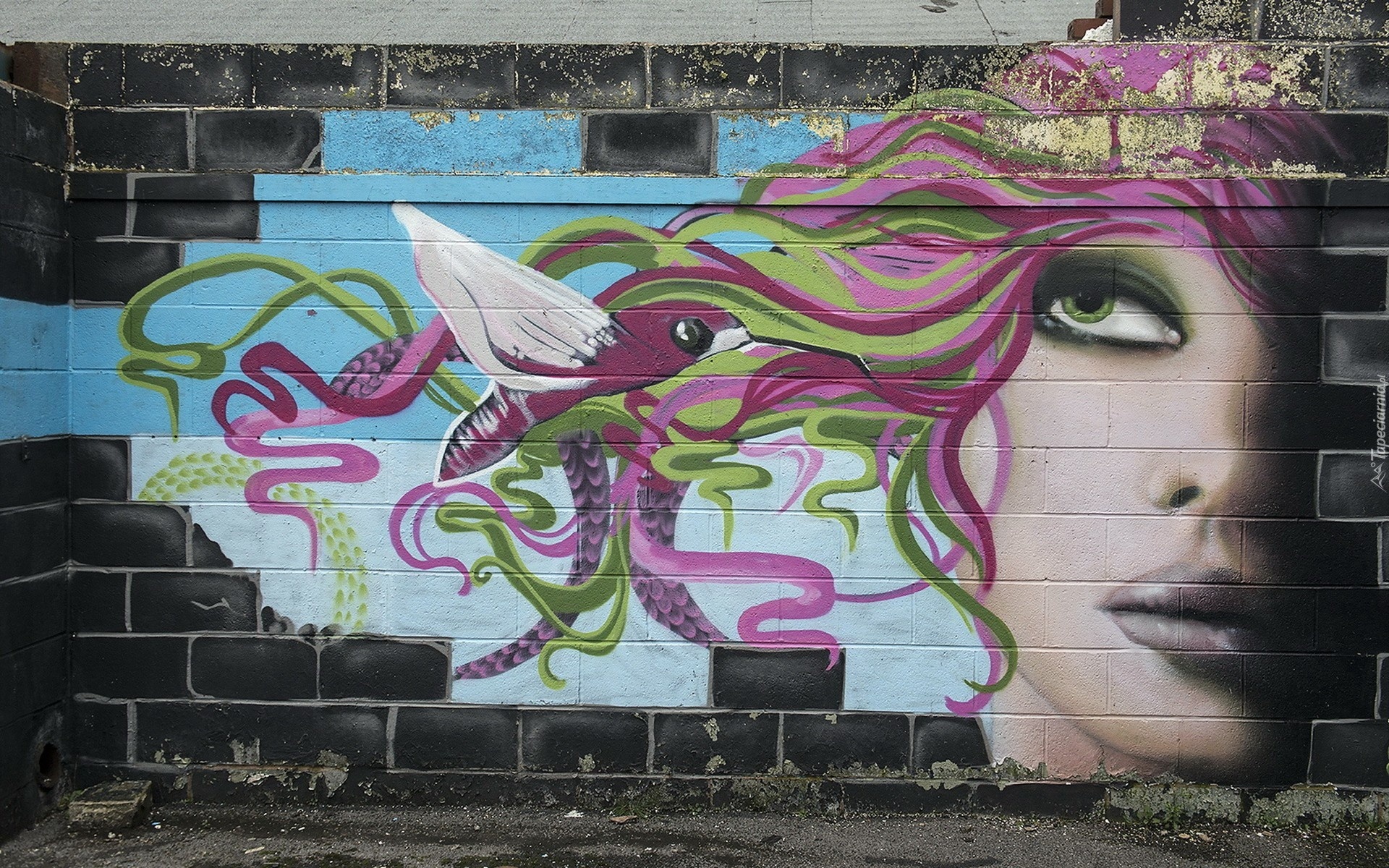 Edytor tapety: Ściana, Mural, Street art, Twarz, Kobieta