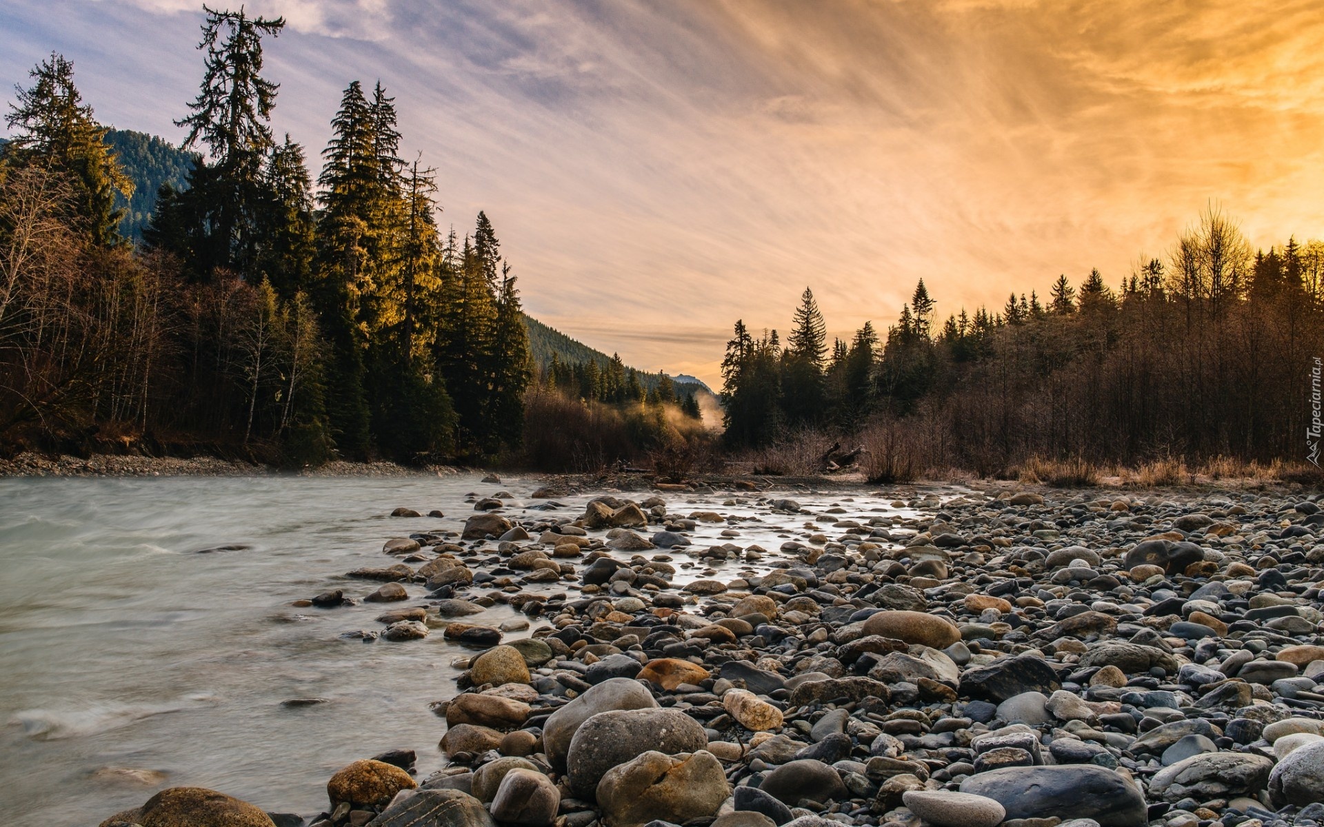 Edytor tapety: Rzeka, Kamienie, Las
