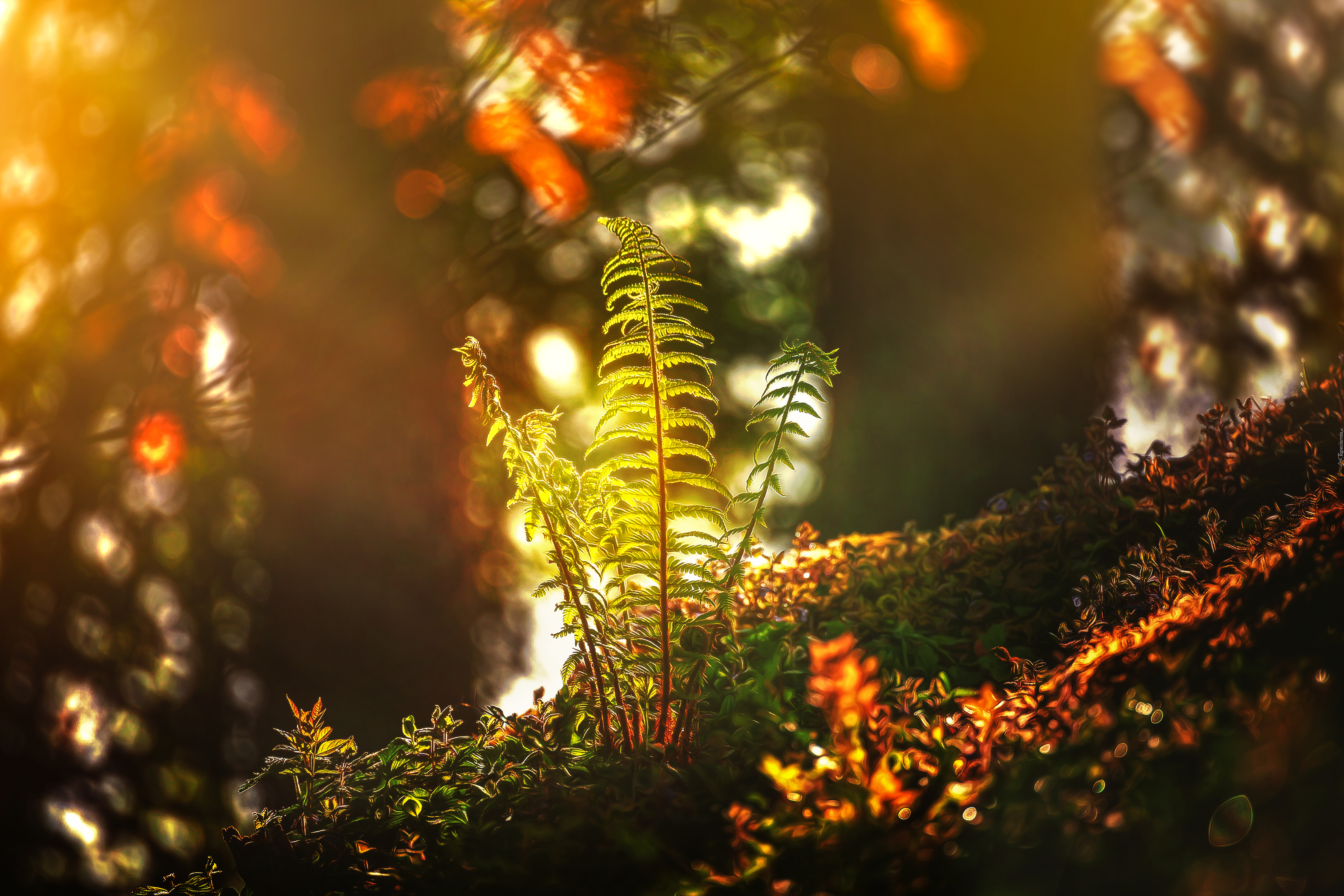 Edytor tapety: Paproć, Strumienie, Słońca