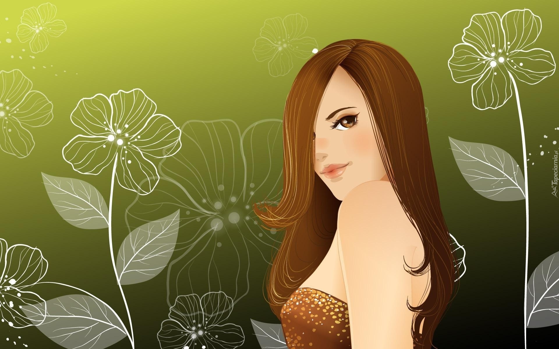 Edytor tapety: Kobieta, Kwiaty, 2D