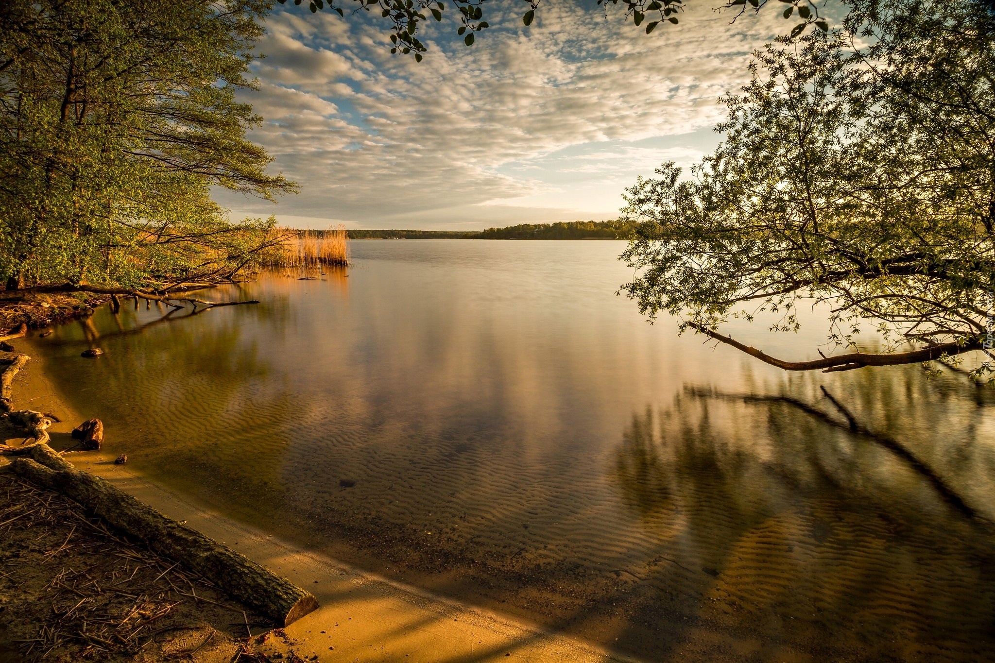 Edytor tapety: Jezioro, Poranek, Drzewa, Brzeg