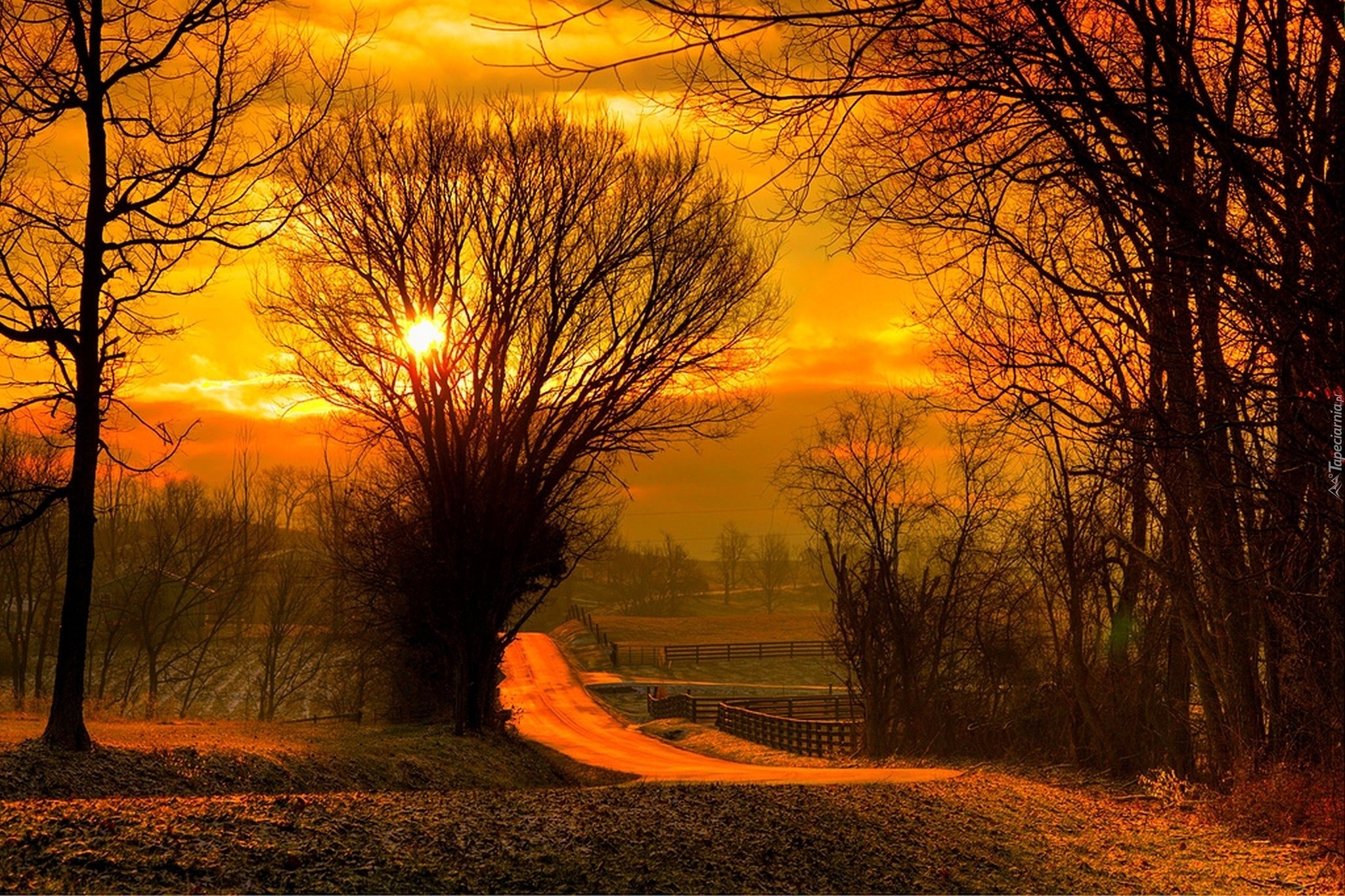 Edytor tapety: Droga, Zachód słońca, Drzewa