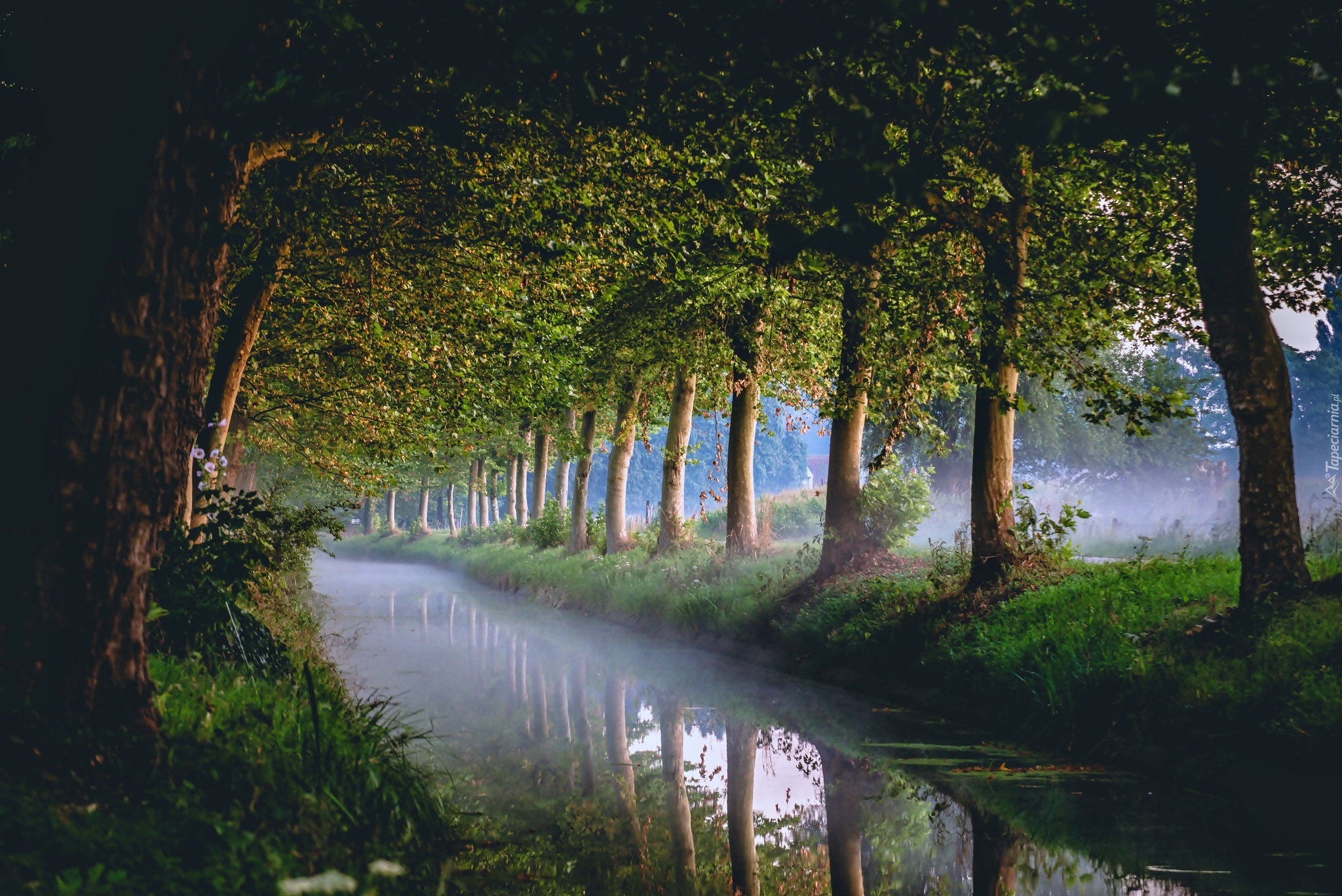 Edytor tapety: Rzeka, Mgła, Drzewa, Odbicie