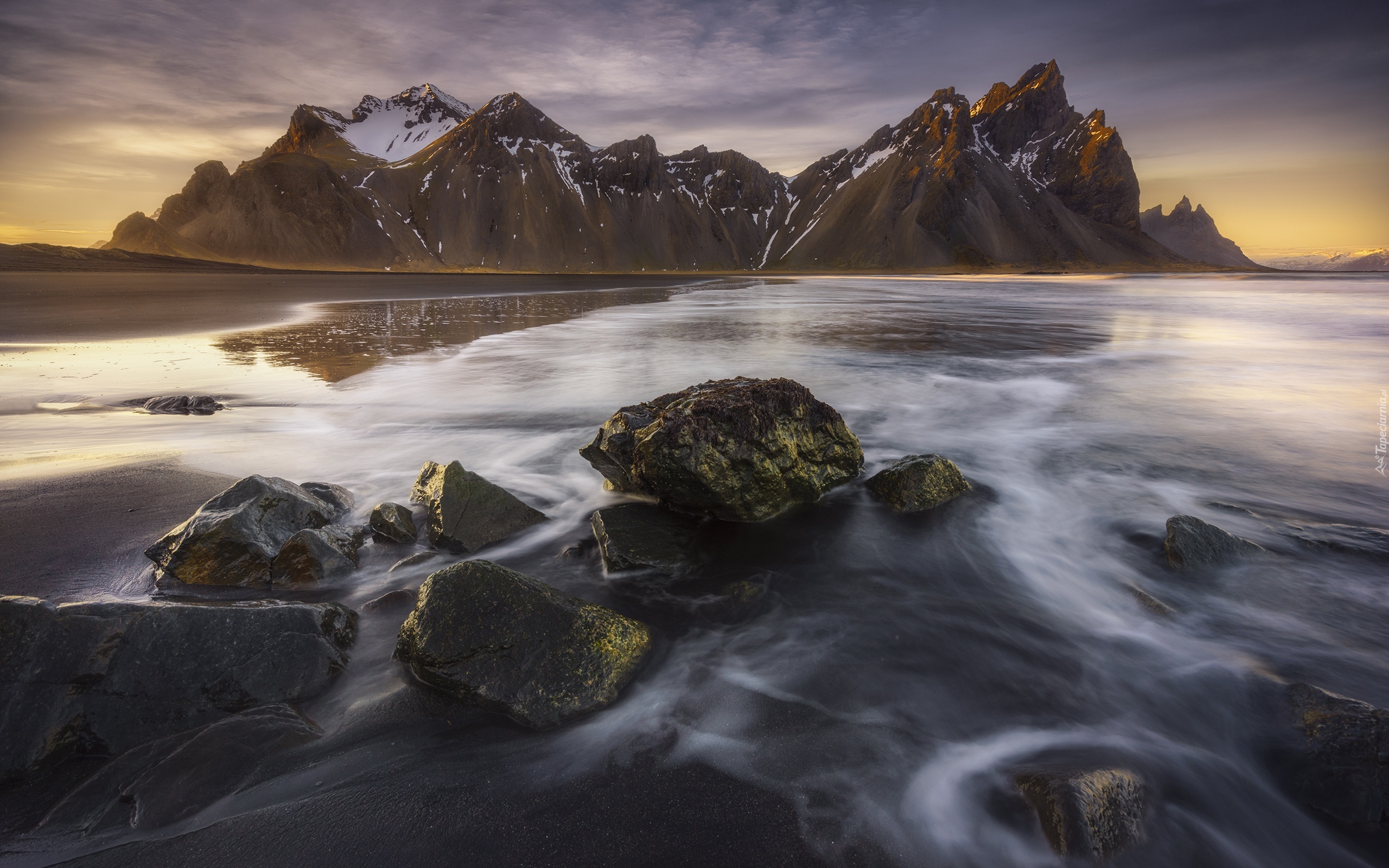 Edytor tapety: Góry, Jezioro, Kamienie, Przebijające światło