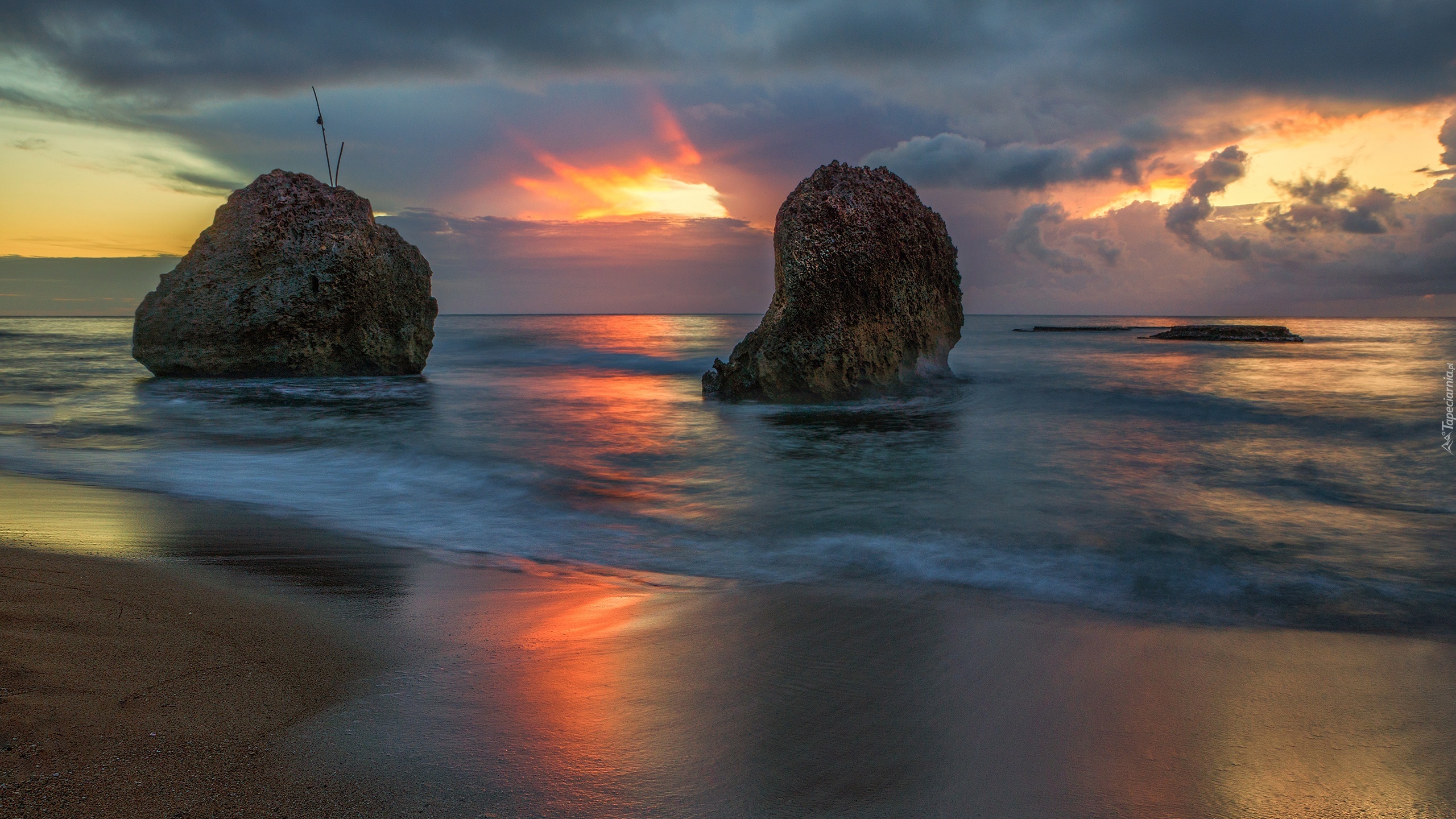 Edytor tapety: Morze, Kamienie, Zachód Słońca, Plaża