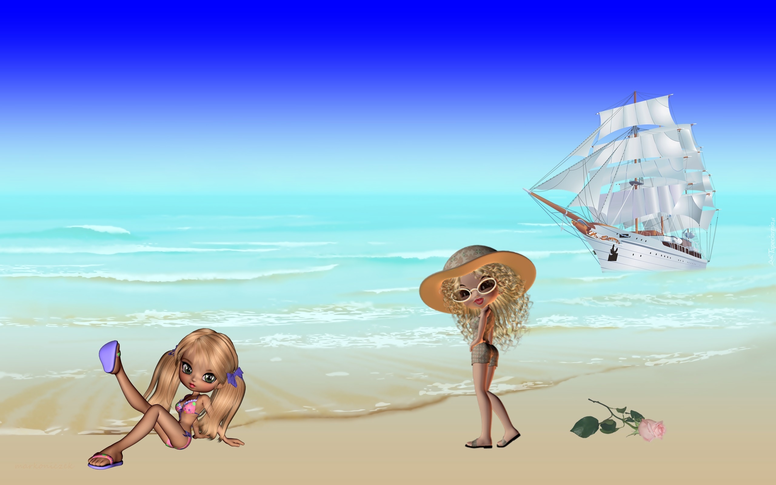 Edytor tapety: Grafika, Laleczki, Morze