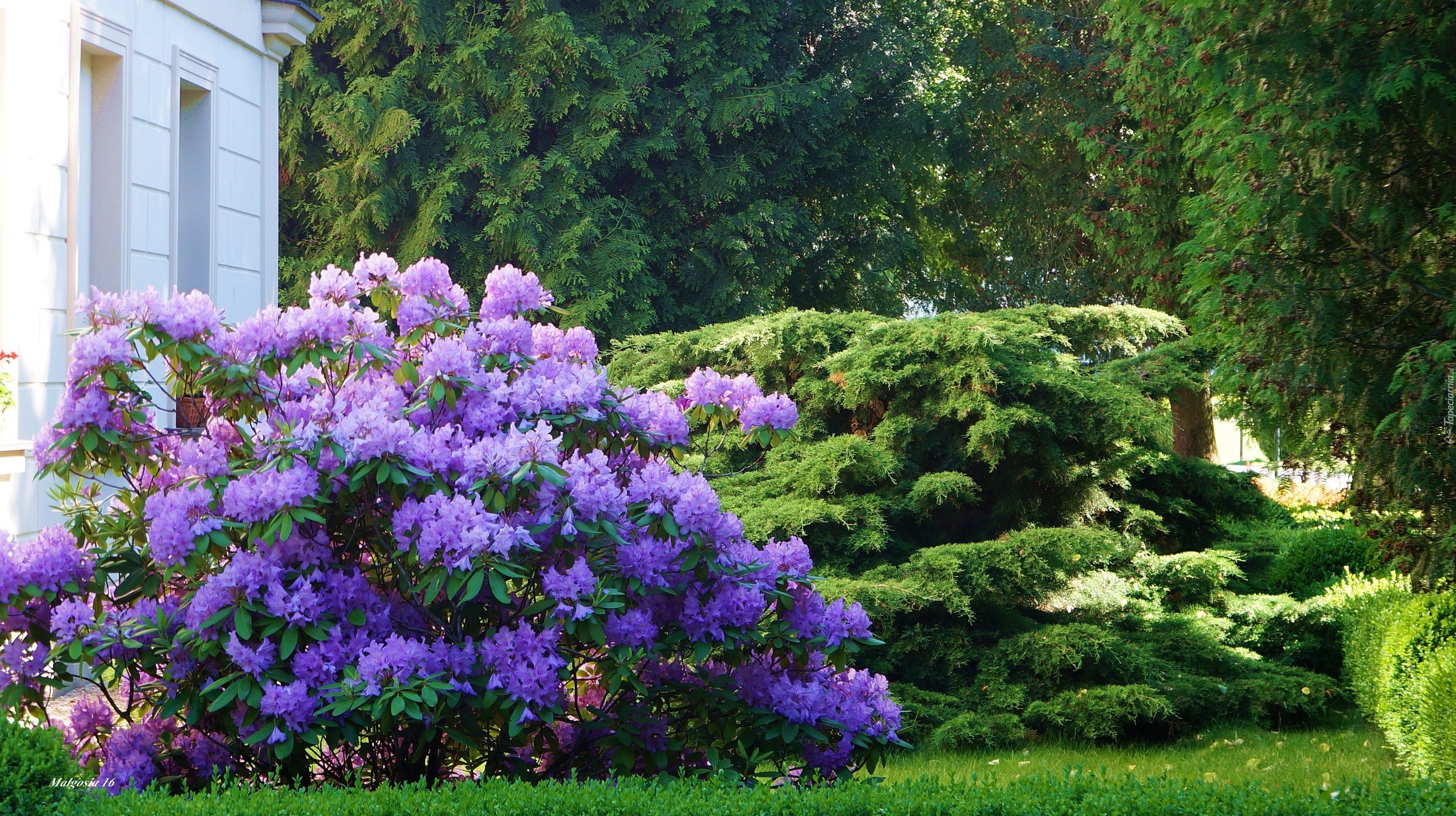 Edytor tapety: Ogród, Krzewy, Rododendron, Kwiaty, Zieleń