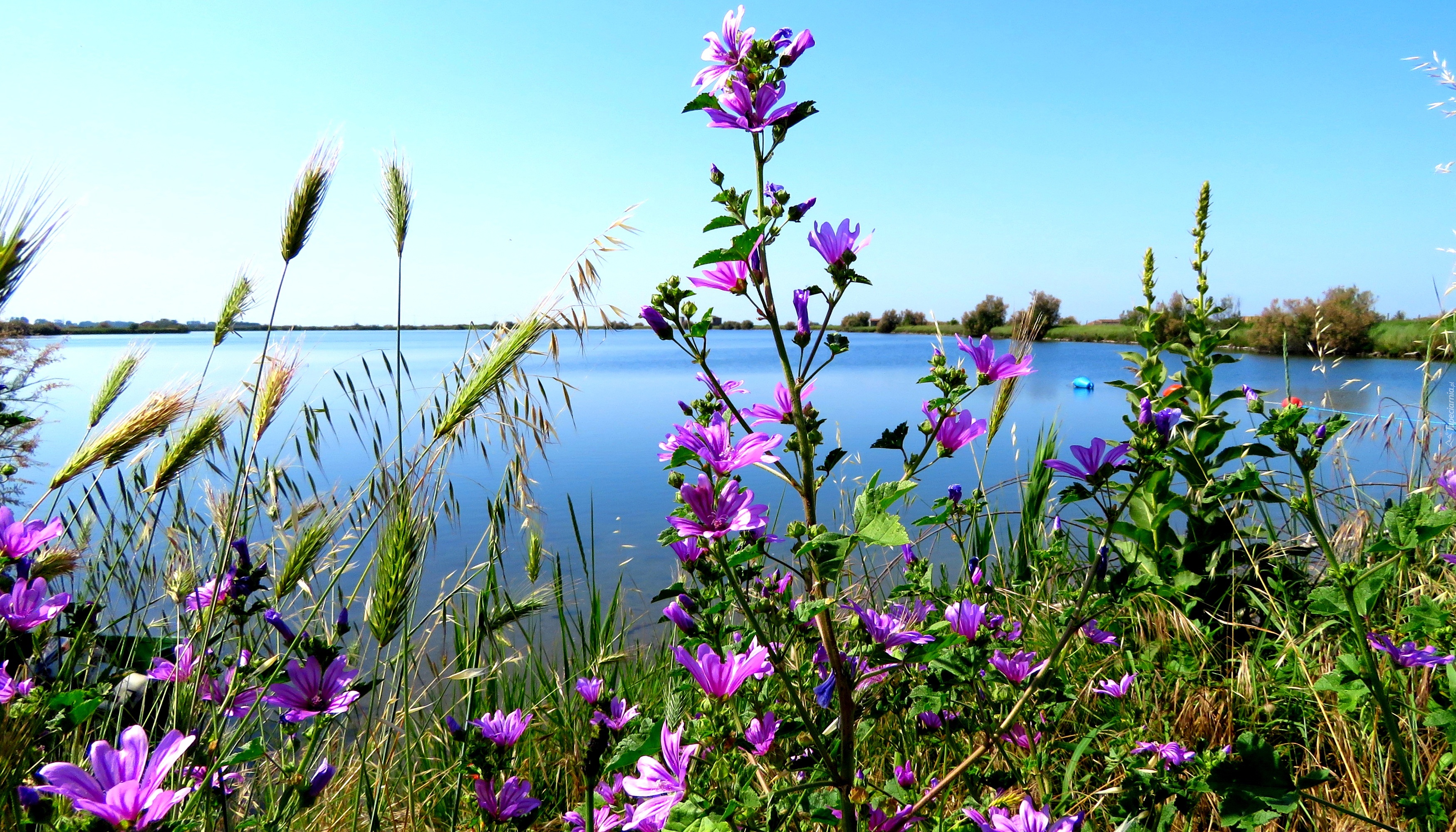 Edytor tapety: Polne, Kwiaty, Rośliny, Jezioro, Lato