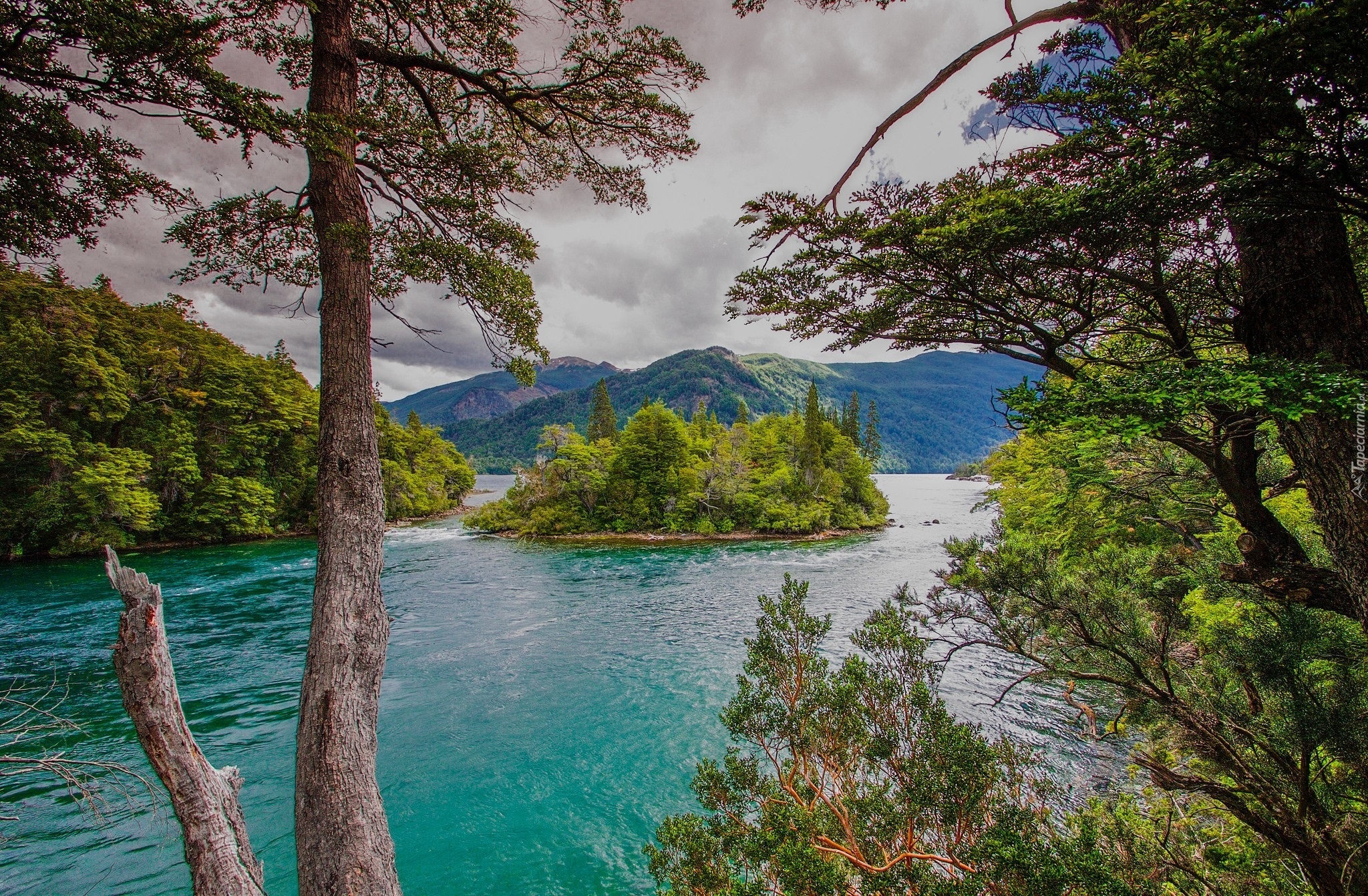 Edytor tapety: Rzeka, Góry, Drzewa