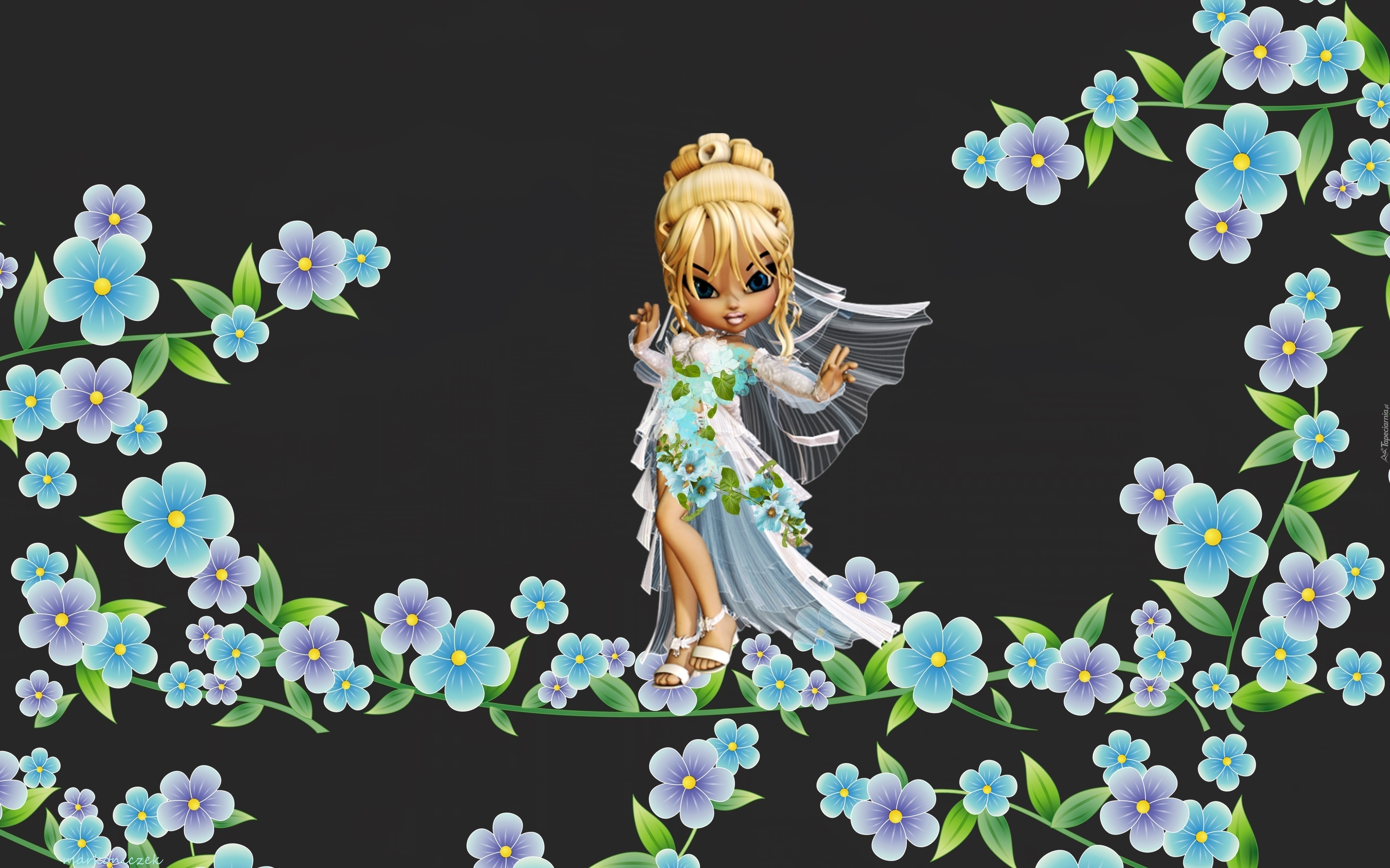 Edytor tapety: Grafika, Laleczka, Kwiaty