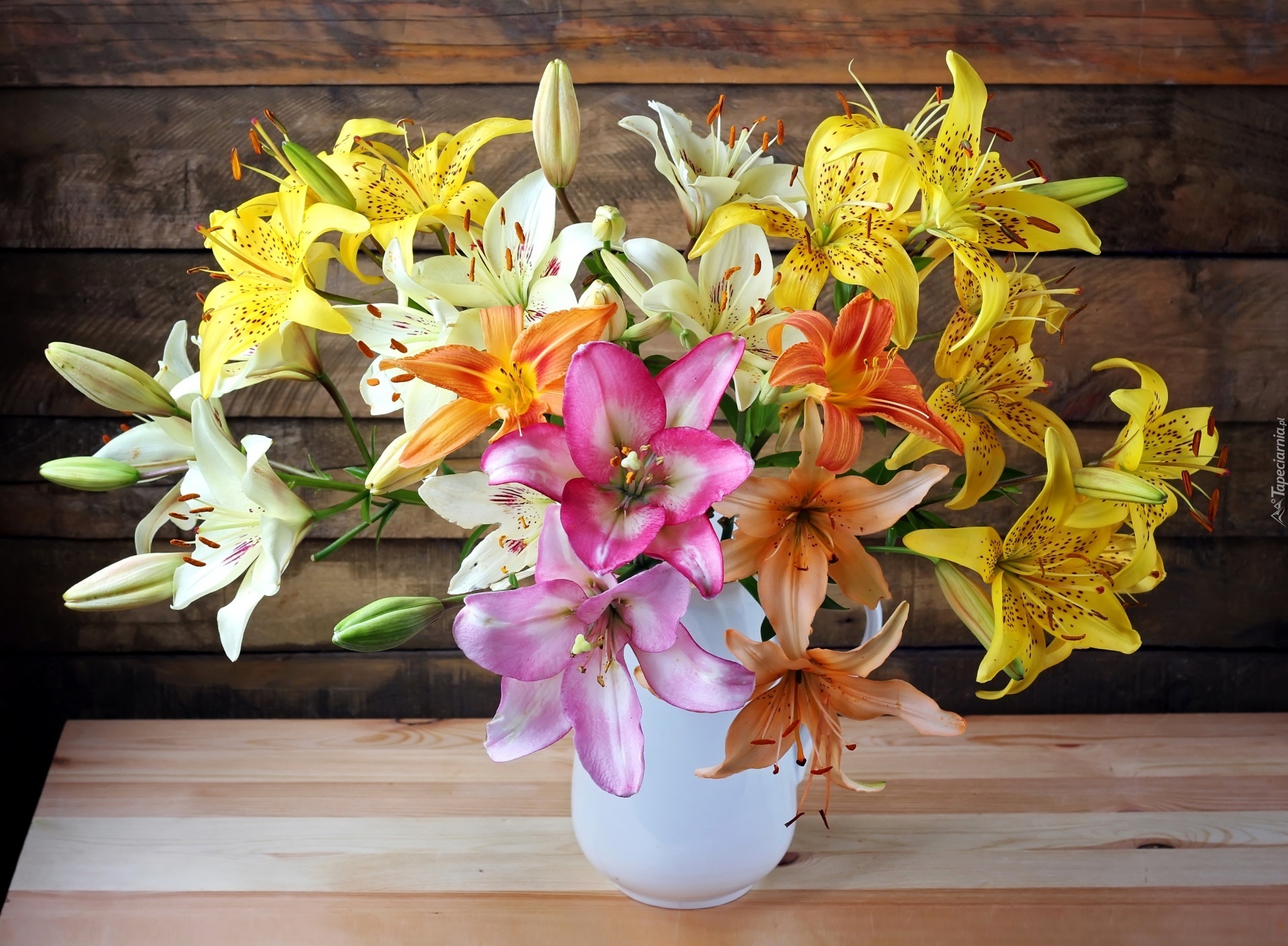Edytor tapety: Kolorowe, Lilie, Wazon
