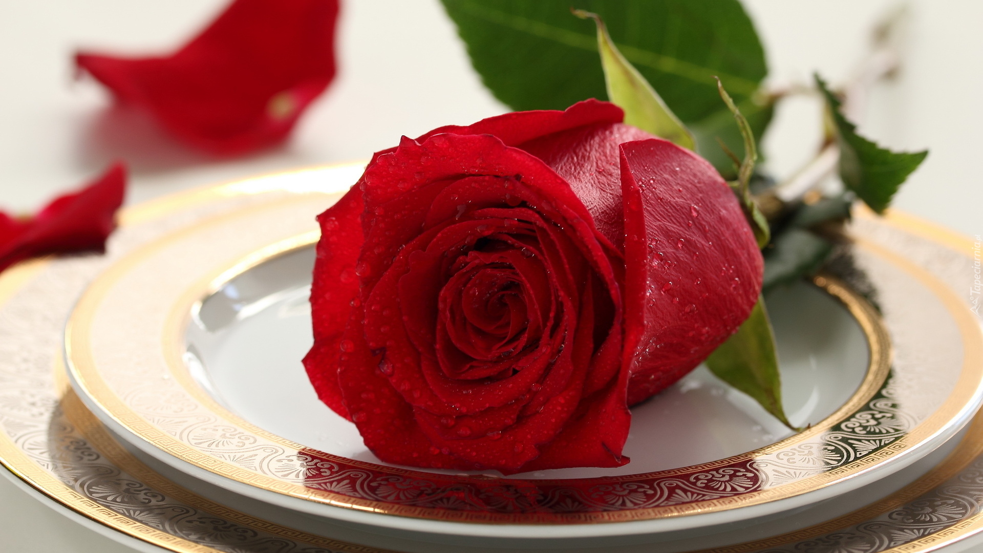 Edytor tapety: Róża, Kwiat, Czerwony, Talerz