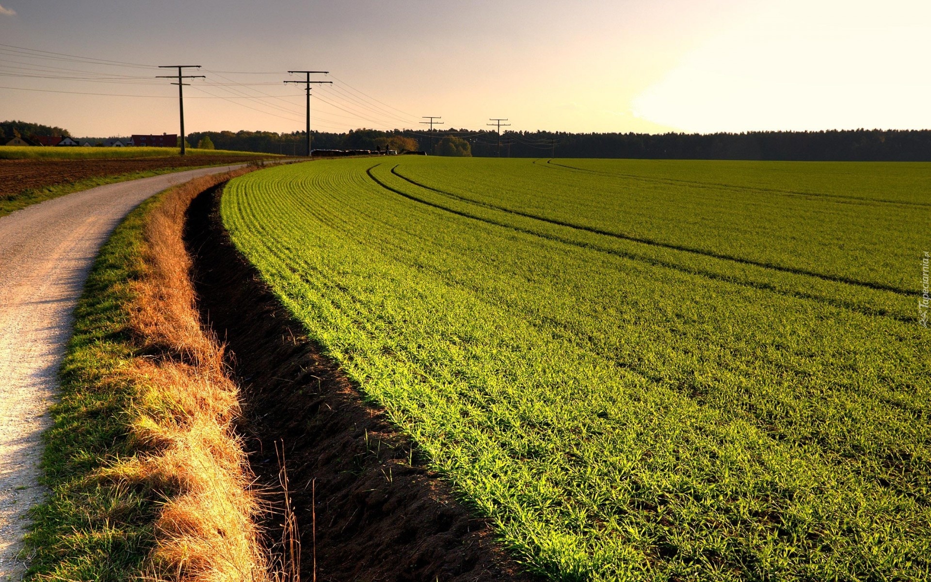 Edytor tapety: Droga, Pole, Słupy