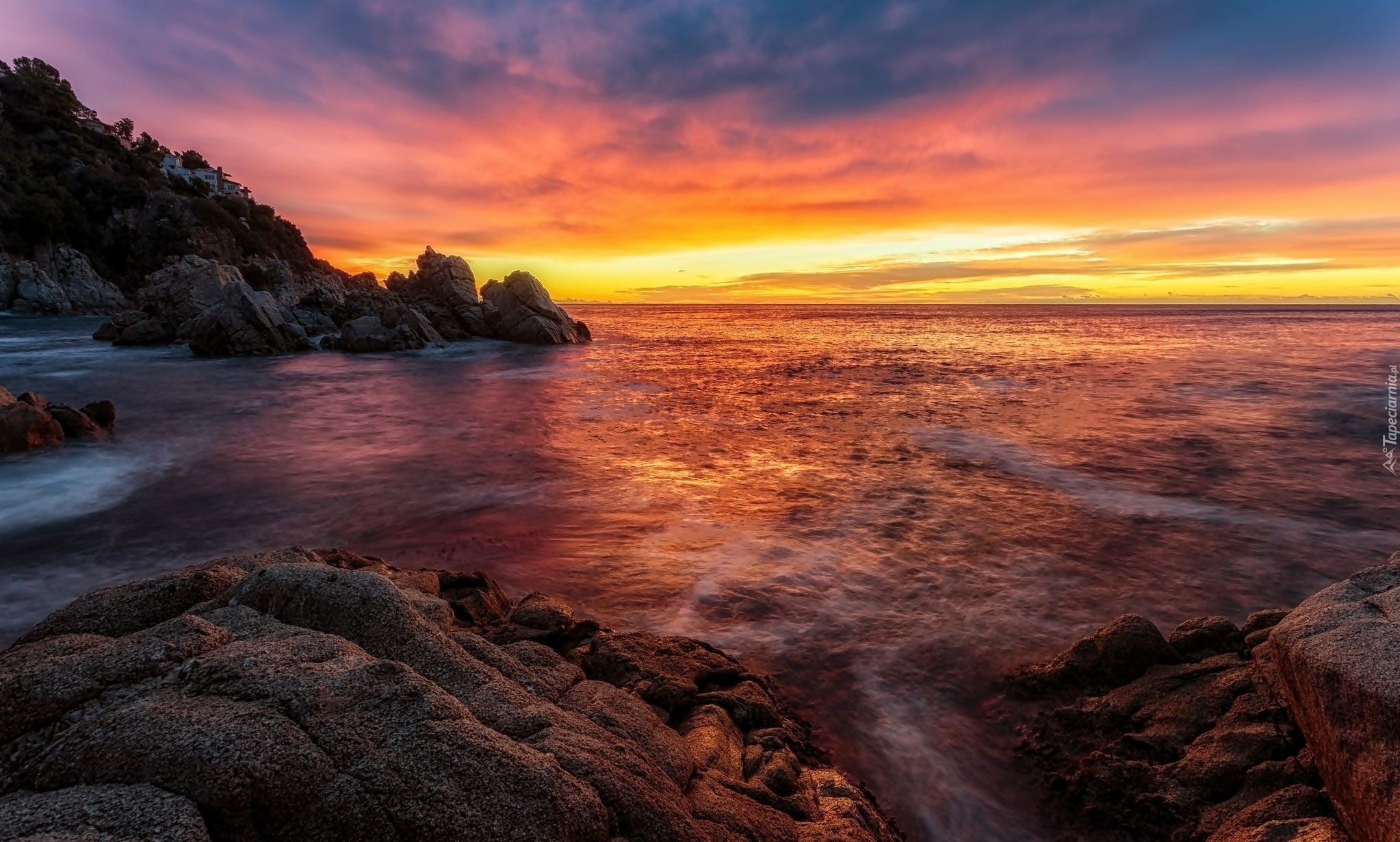 Edytor tapety: Morze, Kamienie, Góry, Zachód, Słońca