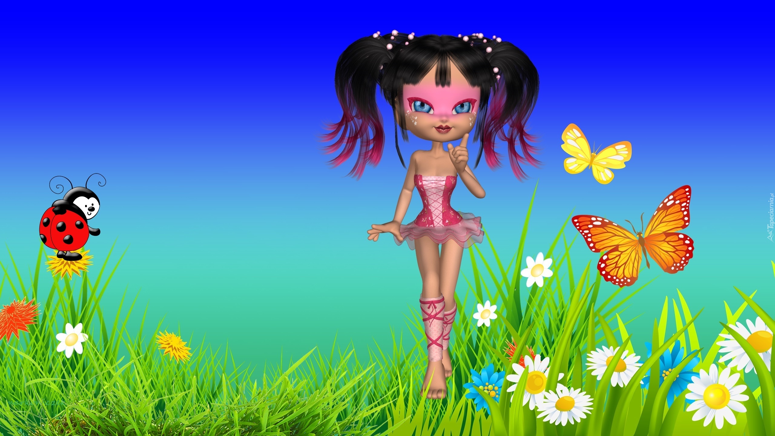 Edytor tapety: Grafika, Kwiaty, Motylki