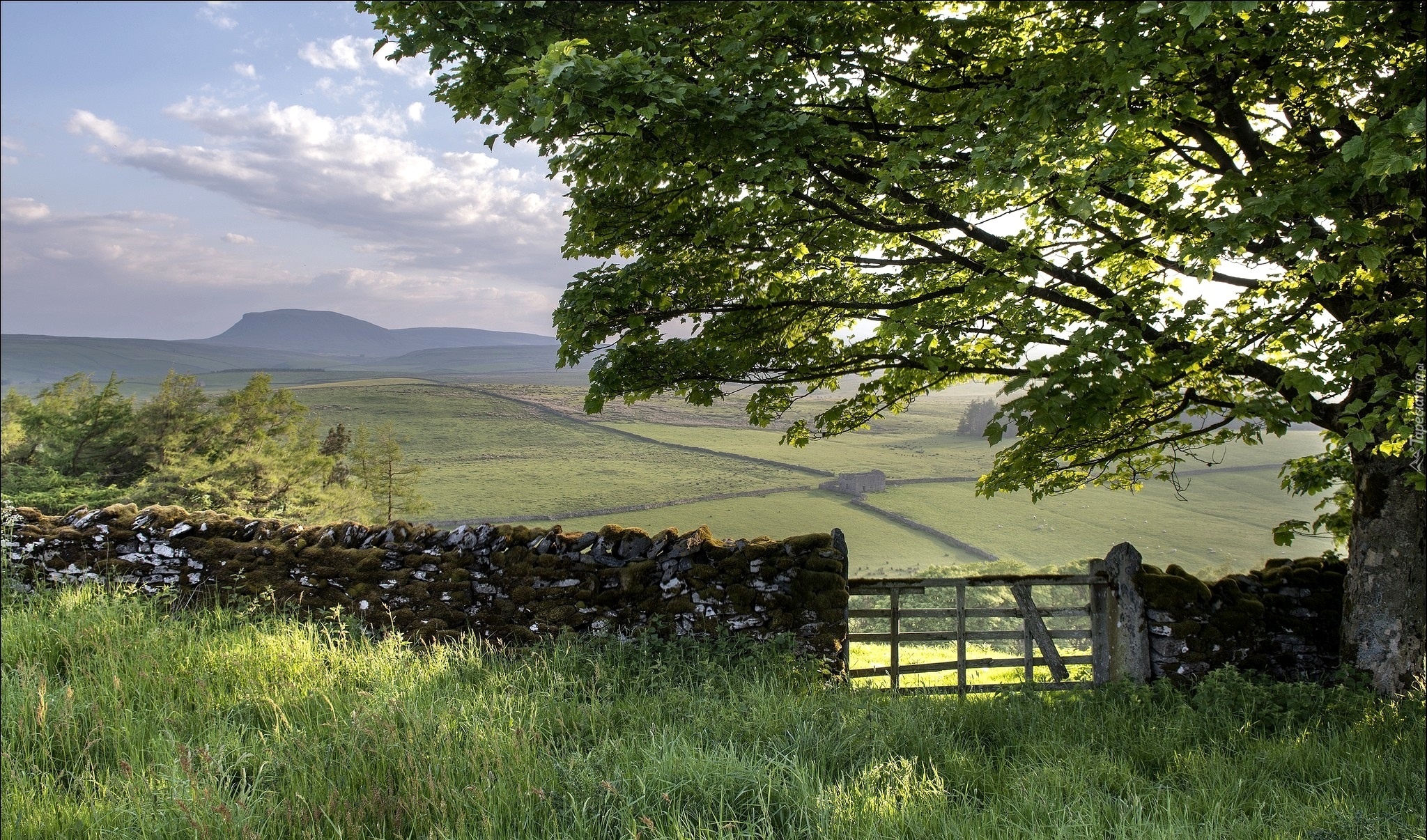 Edytor tapety: Pole, Łąka, Drzewo, Ogrodzenie