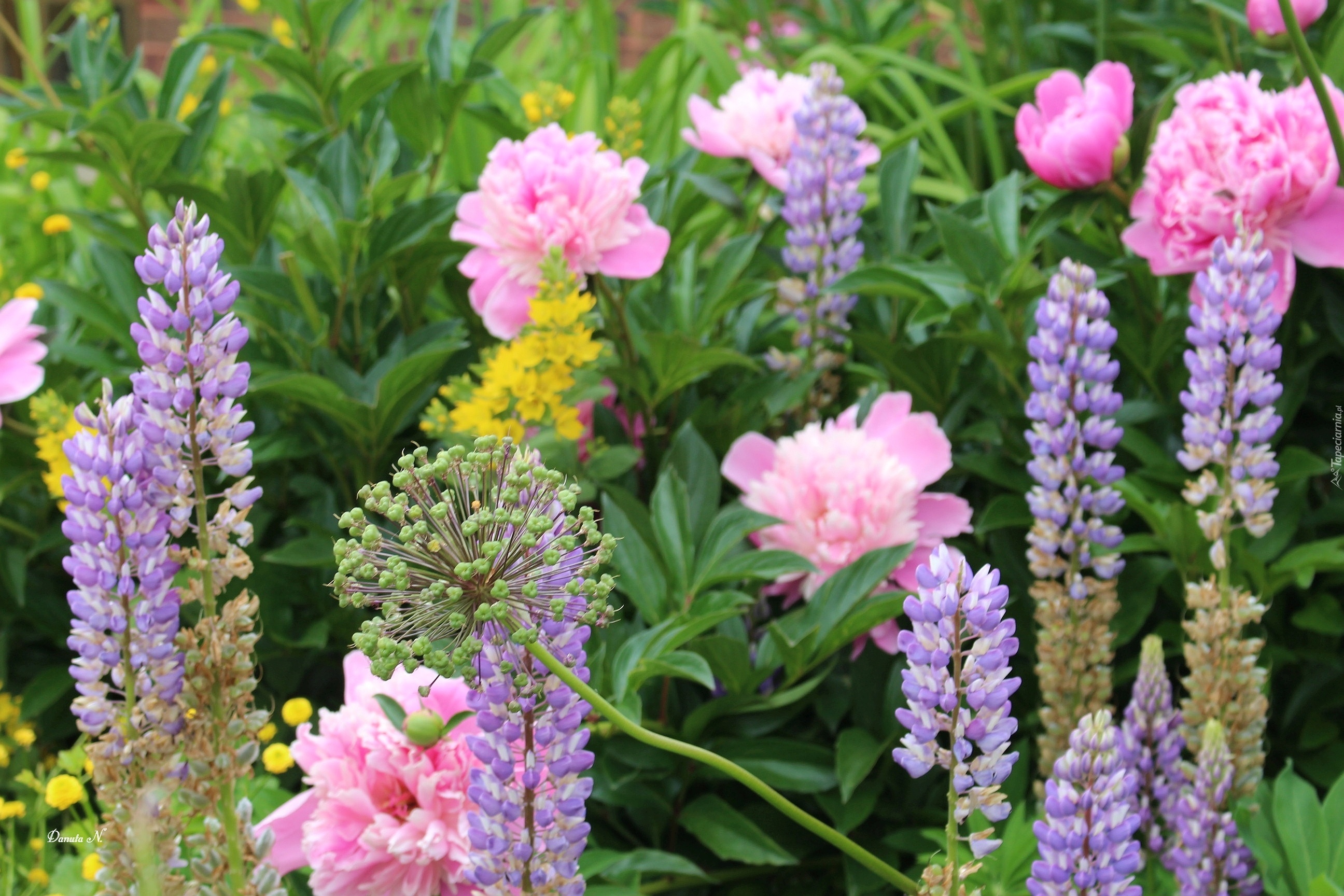 Edytor tapety: Piwonie, Łubin, Liście, Łąka, Polne