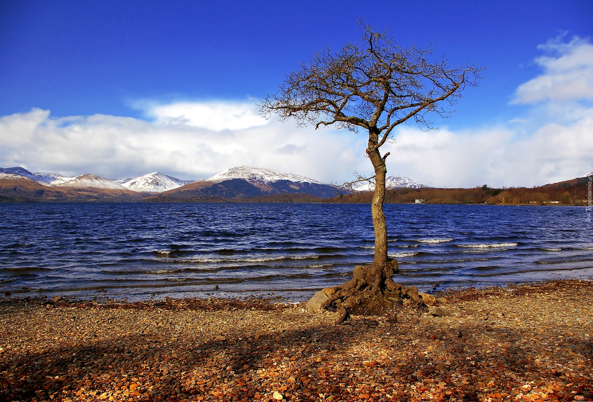 Edytor tapety: Jezioro, Drzewo, Brzeg, Niebo