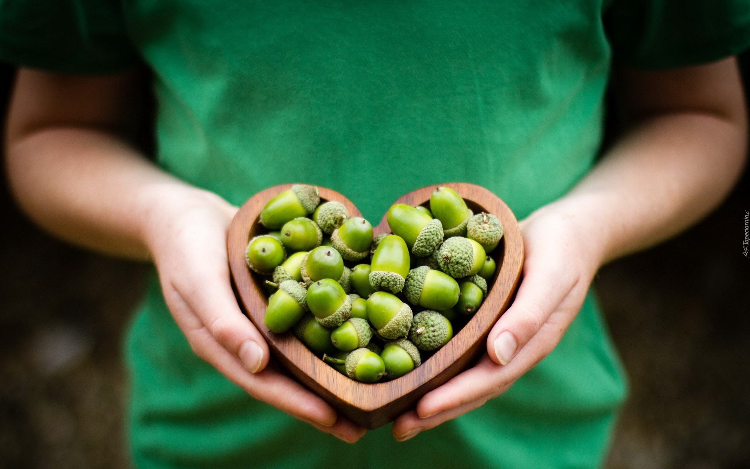 Edytor tapety: Serce, Zielone, Żołędzie, Dłonie